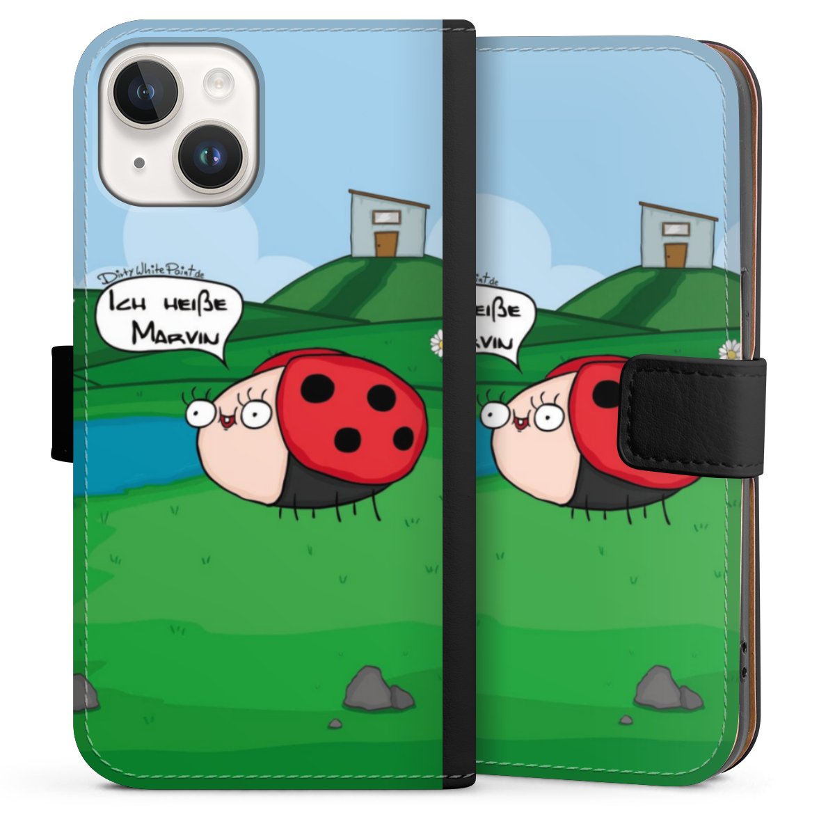Ob Du Dich nun für Marvin, Günther das Schaf oder doch lieber für die dauerbekiffte Cannabiene entscheidest. Mit einem Motiv von DirtyWhitePaint wird Dein Smartphonen selbst zum Comic.
