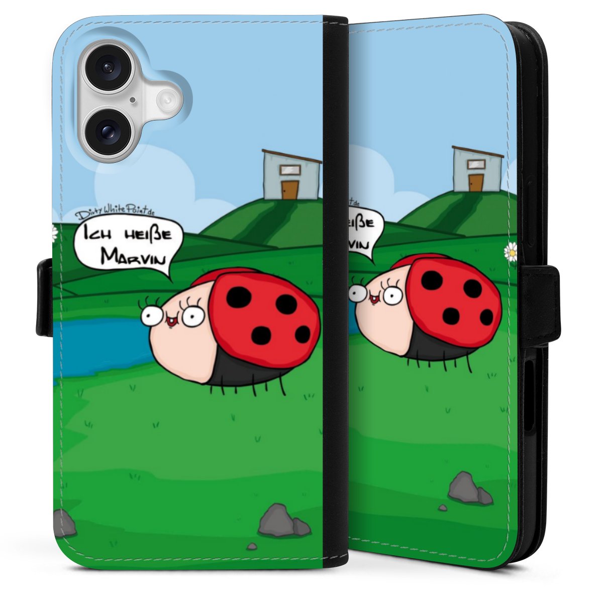 Ob Du Dich nun für Marvin, Günther das Schaf oder doch lieber für die dauerbekiffte Cannabiene entscheidest. Mit einem Motiv von DirtyWhitePaint wird Dein Smartphonen selbst zum Comic.