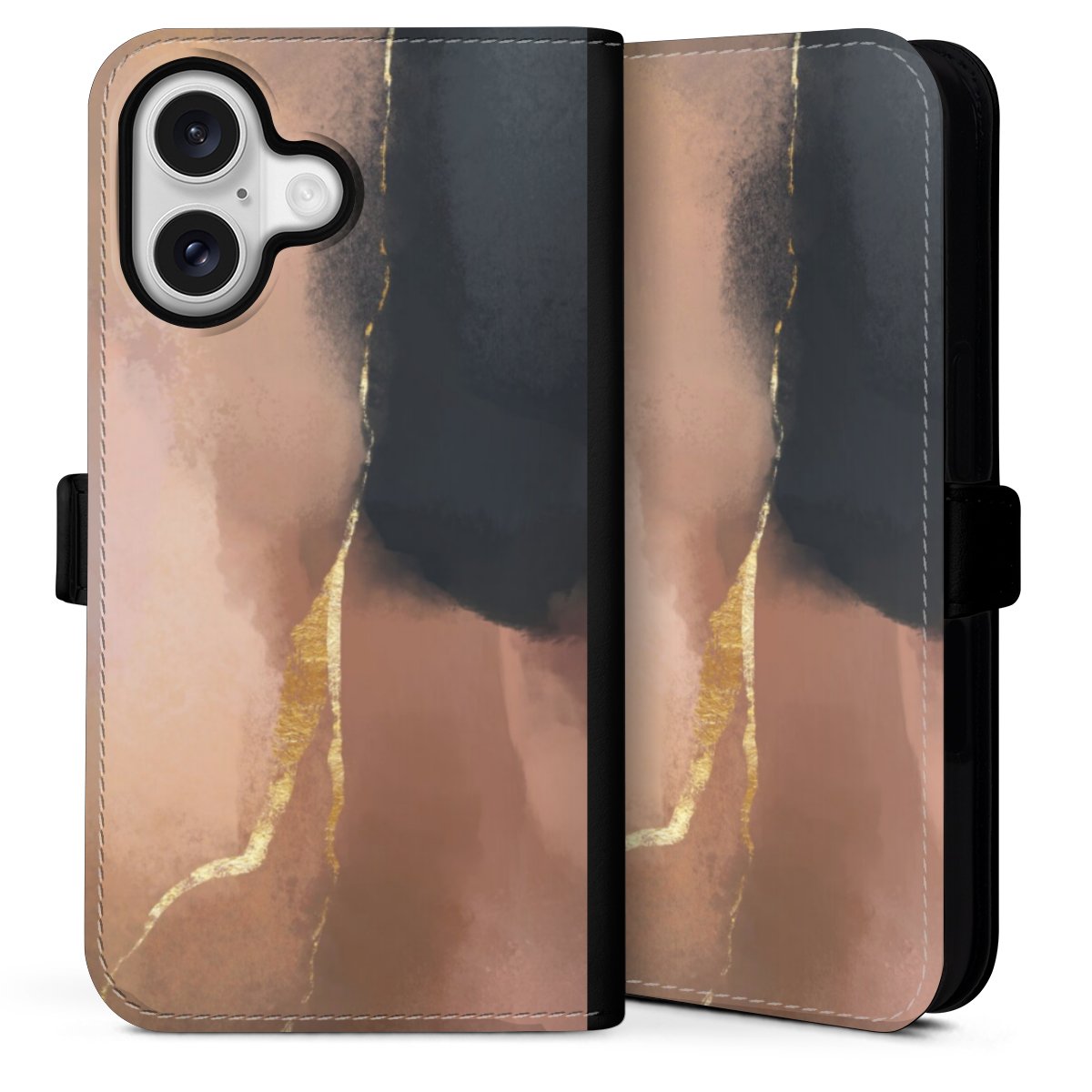 Die praktische Handyhülle schützt dein Handy innen mit einer flexiblen Silikon-Schale, außen kommt ein hochwertiges veganes Skai®-Kunstleder zum Einsatz. Die Handyhülle ist seitlich aufklappbar und hat im schützenden Deckel 2 diagonal vernähte Steckplätze für Karten oder Geldscheine.
