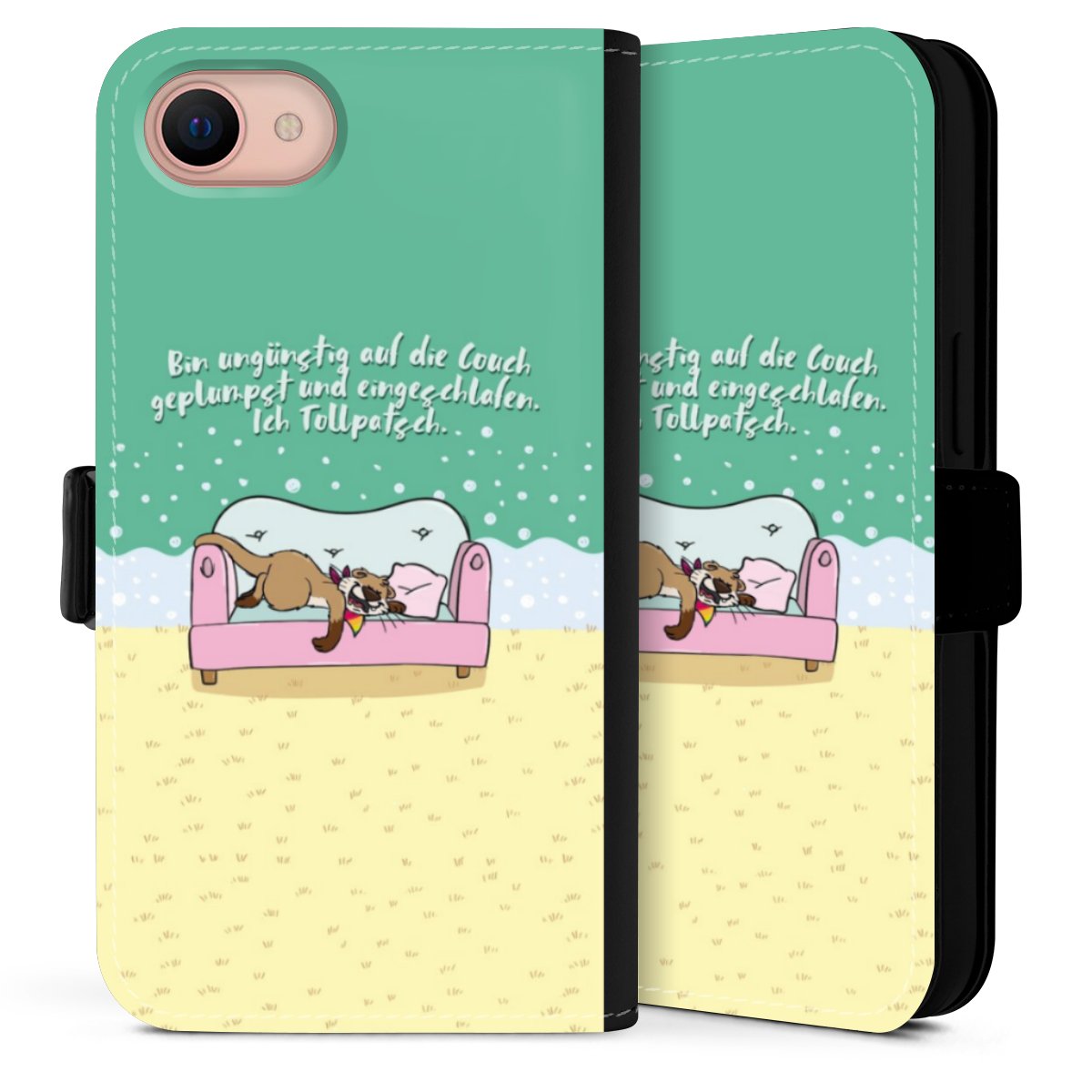 Die Sideflip Handyhülle ist wie für Dich und Dein Handy geschaffen: So gibt es Aussparungen für Anschlüsse, Kamera und Bedienelemente. Die Vorderseite der Hülle deckt Deinen ganzen Bildschirm optimal ab. Durch eine magnetische Lasche an der Seite schließt die Hülle sicher und zuverlässig. Im Handumdrehen kannst Du die Handyhülle anbringen und abnehmen.