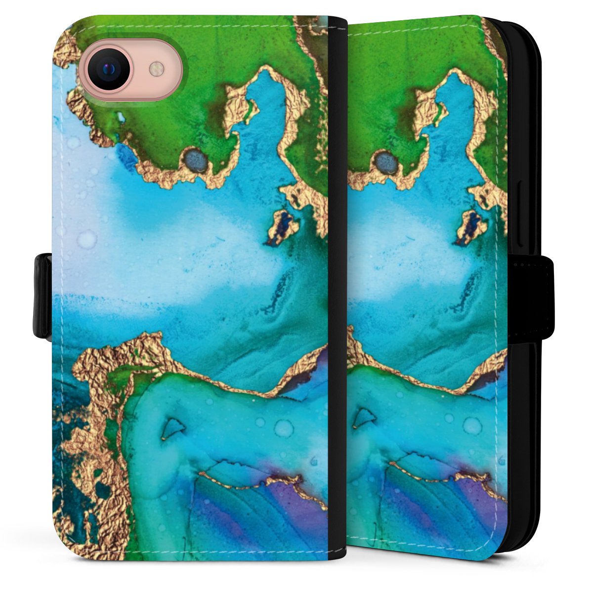 Bei dieser Handyhülle nutzen wir das solide Direktdruck-Verfahren. Der Druckbereich umfasst die Vorder- und Rückseite, die Innenseiten bleiben unbedruckt. Die Handyhülle kann sowohl unbedruckt, als auch vollflächig oder partiell bedruckt bestellt werden. Beachte hierbei, dass der Druck wie in der Ansicht dargestellt auf dem Rücken unterbrochen ist, damit Dein Druckbild durch das Klappen der Tasche nicht brüchig wird. Der Vorteil bei diesem Produkt: aufgrund der seitlich angebrachten Lasche wird kein Teil des Druckbildes verdeckt.