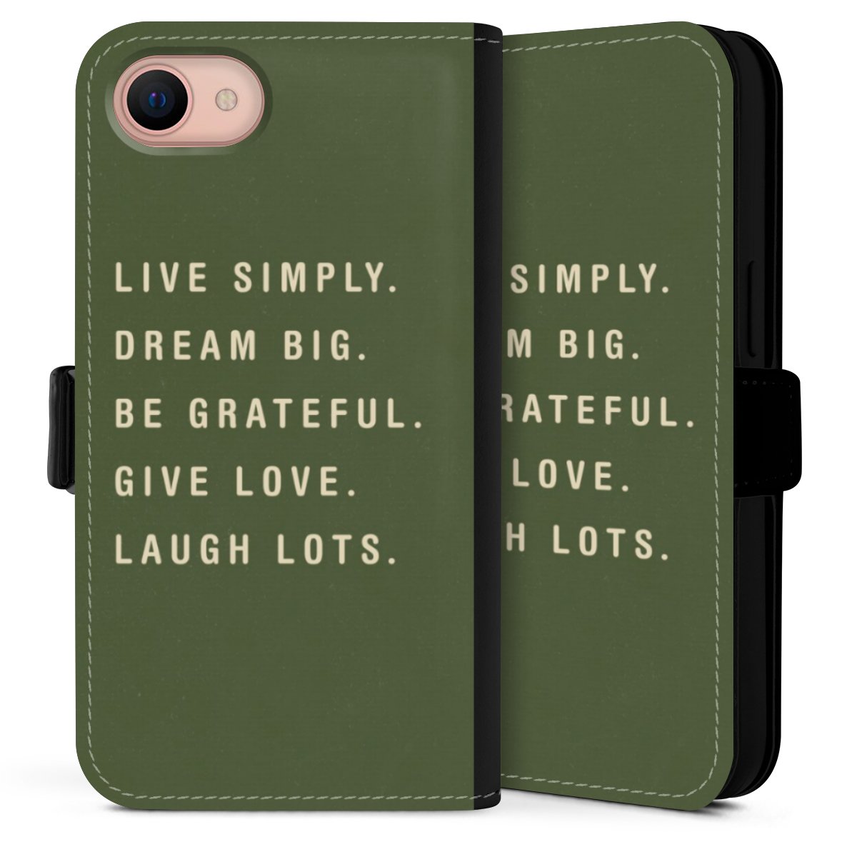 Die Sideflip Handyhülle ist wie für Dich und Dein Handy geschaffen: So gibt es Aussparungen für Anschlüsse, Kamera und Bedienelemente. Die Vorderseite der Hülle deckt Deinen ganzen Bildschirm optimal ab. Durch eine magnetische Lasche an der Seite schließt die Hülle sicher und zuverlässig. Im Handumdrehen kannst Du die Handyhülle anbringen und abnehmen.