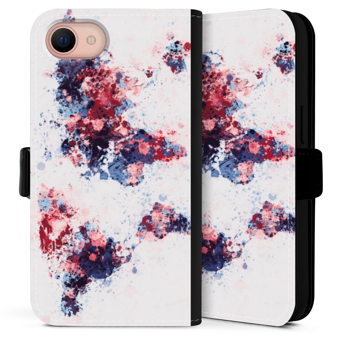 Weltkarte Farbenspritzer Blau Rot
