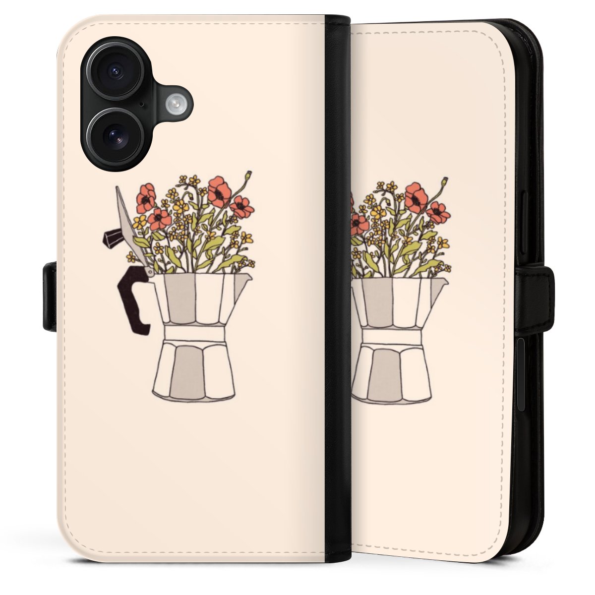 Die praktische Handyhülle schützt dein Handy innen mit einer flexiblen Silikon-Schale, außen kommt ein hochwertiges veganes Skai®-Kunstleder zum Einsatz. Die Handyhülle ist seitlich aufklappbar und hat im schützenden Deckel 2 diagonal vernähte Steckplätze für Karten oder Geldscheine.