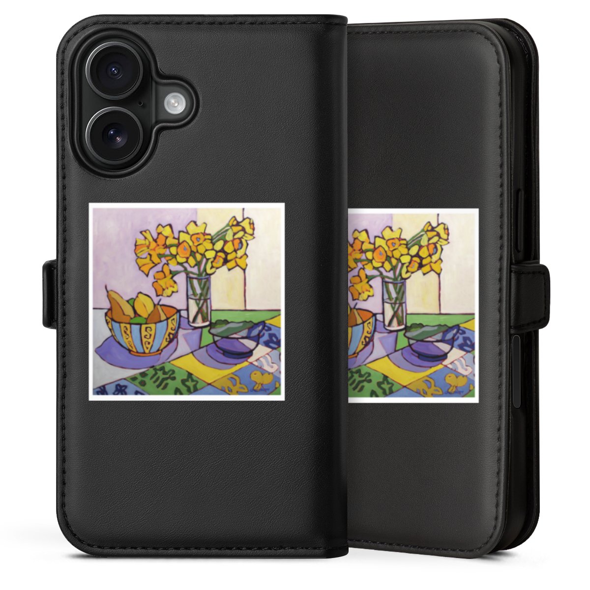 Die praktische Handyhülle schützt dein Handy innen mit einer flexiblen Silikon-Schale, außen kommt ein hochwertiges veganes Skai®-Kunstleder zum Einsatz. Die Handyhülle ist seitlich aufklappbar und hat im schützenden Deckel 2 diagonal vernähte Steckplätze für Karten oder Geldscheine.