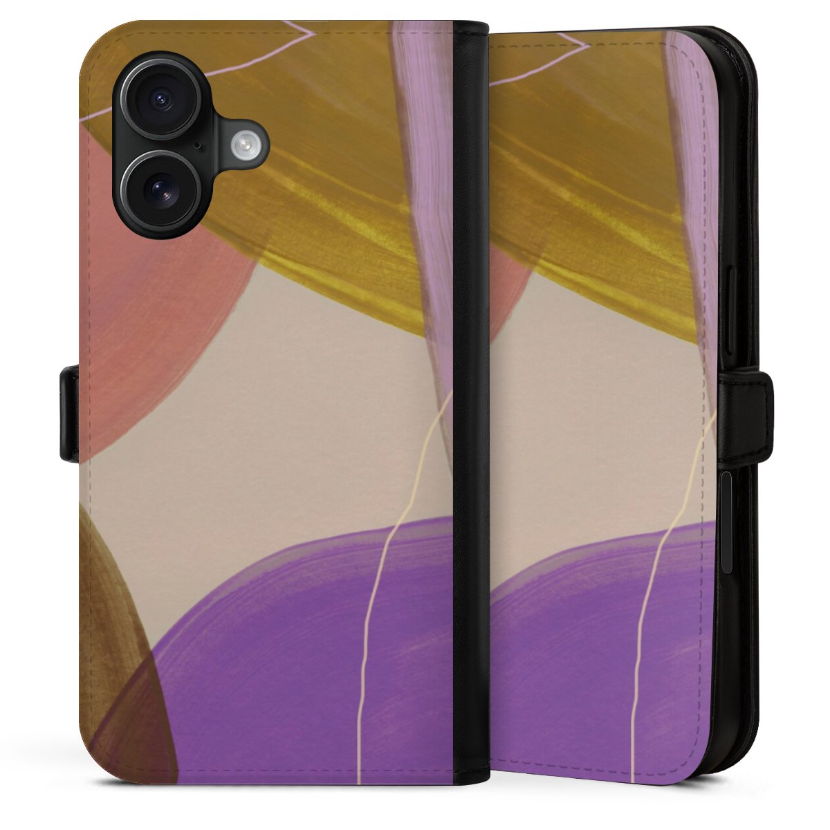Bei dieser Handyhülle nutzen wir das solide Direktdruck-Verfahren. Der Druckbereich umfasst die Vorder- und Rückseite, die Innenseiten bleiben unbedruckt. Die Handyhülle kann sowohl unbedruckt, als auch vollflächig oder partiell bedruckt bestellt werden. Beachte hierbei, dass der Druck wie in der Ansicht dargestellt auf dem Rücken unterbrochen ist, damit Dein Druckbild durch das Klappen der Tasche nicht brüchig wird. Der Vorteil bei diesem Produkt: aufgrund der seitlich angebrachten Lasche wird kein Teil des Druckbildes verdeckt.