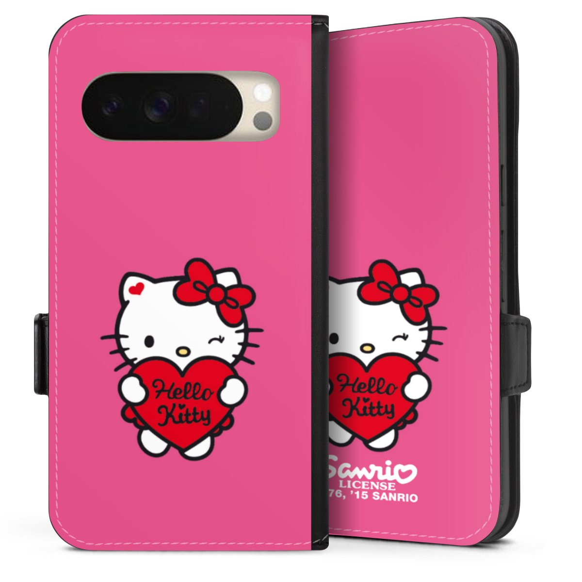 Die praktische Handyhülle schützt dein Handy innen mit einer flexiblen Silikon-Schale, außen kommt ein hochwertiges veganes Skai®-Kunstleder zum Einsatz. Die Handyhülle ist seitlich aufklappbar und hat im schützenden Deckel 2 diagonal vernähte Steckplätze für Karten oder Geldscheine.