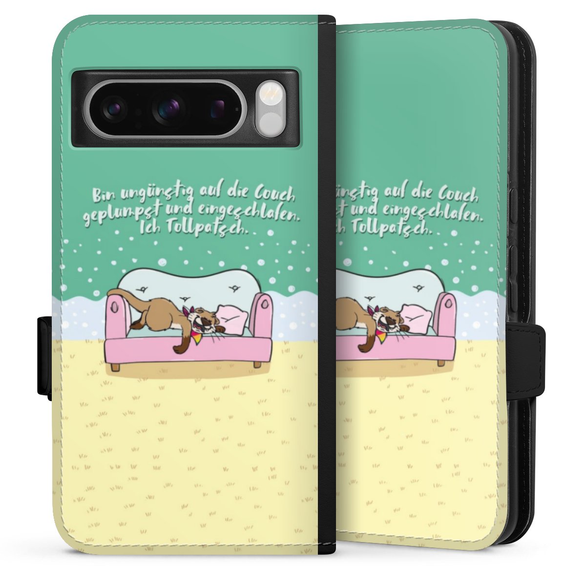 Die Sideflip Handyhülle ist wie für Dich und Dein Handy geschaffen: So gibt es Aussparungen für Anschlüsse, Kamera und Bedienelemente. Die Vorderseite der Hülle deckt Deinen ganzen Bildschirm optimal ab. Durch eine magnetische Lasche an der Seite schließt die Hülle sicher und zuverlässig. Im Handumdrehen kannst Du die Handyhülle anbringen und abnehmen.