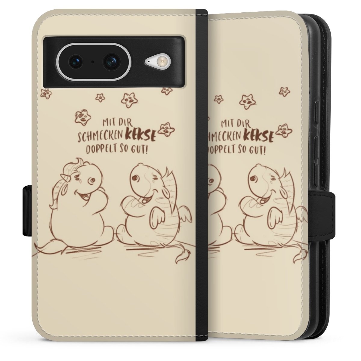 Die praktische Handyhülle schützt dein Handy innen mit einer flexiblen Silikon-Schale, außen kommt ein hochwertiges veganes Skai®-Kunstleder zum Einsatz. Die Handyhülle ist seitlich aufklappbar und hat im schützenden Deckel 2 diagonal vernähte Steckplätze für Karten oder Geldscheine.