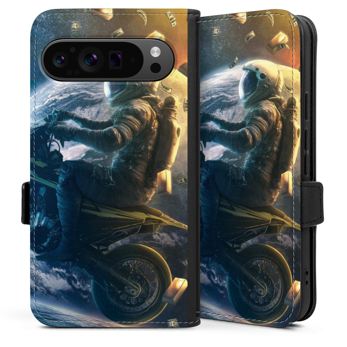 Die praktische Handyhülle schützt dein Handy innen mit einer flexiblen Silikon-Schale, außen kommt ein hochwertiges veganes Skai®-Kunstleder zum Einsatz. Die Handyhülle ist seitlich aufklappbar und hat im schützenden Deckel 2 diagonal vernähte Steckplätze für Karten oder Geldscheine.