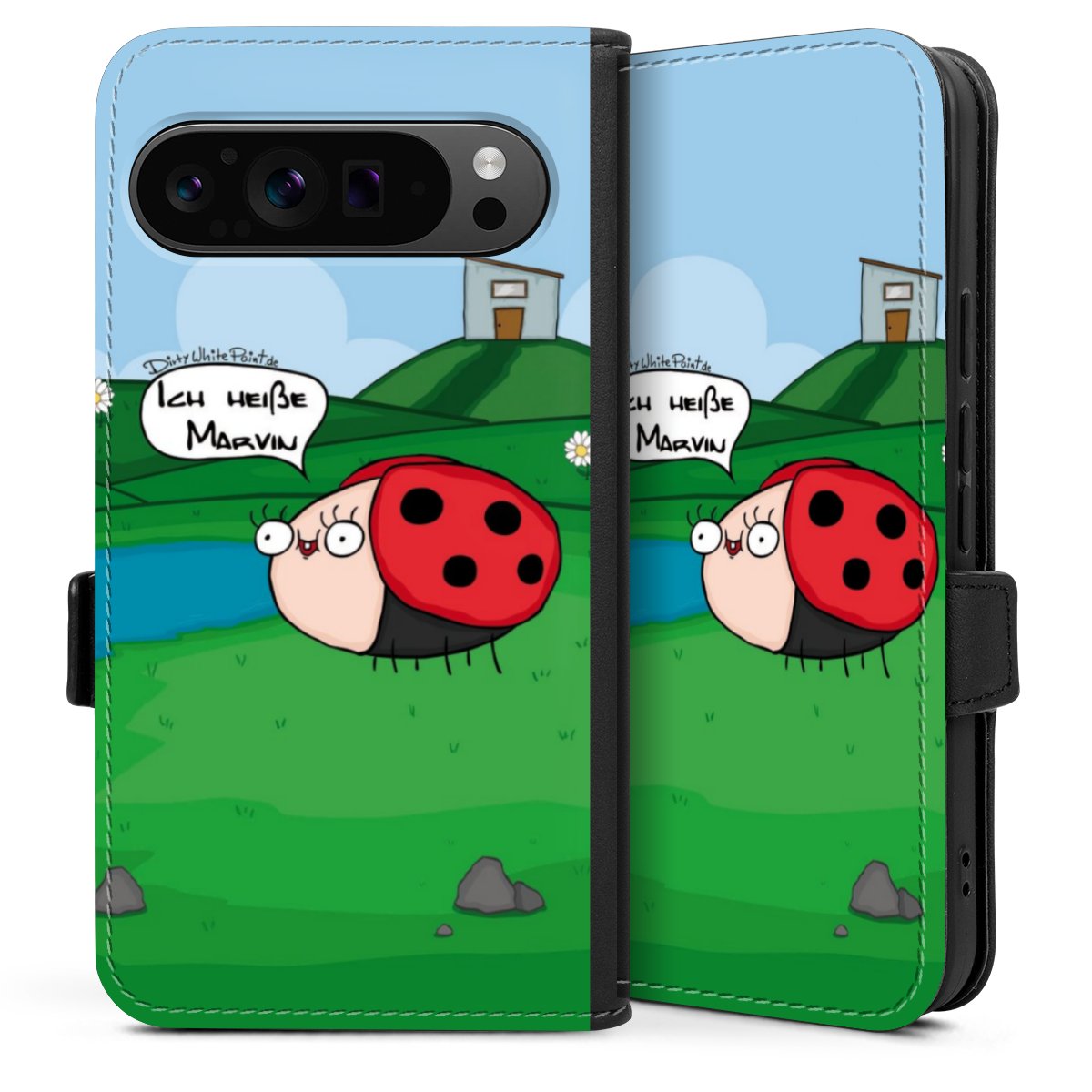Ob Du Dich nun für Marvin, Günther das Schaf oder doch lieber für die dauerbekiffte Cannabiene entscheidest. Mit einem Motiv von DirtyWhitePaint wird Dein Smartphonen selbst zum Comic.