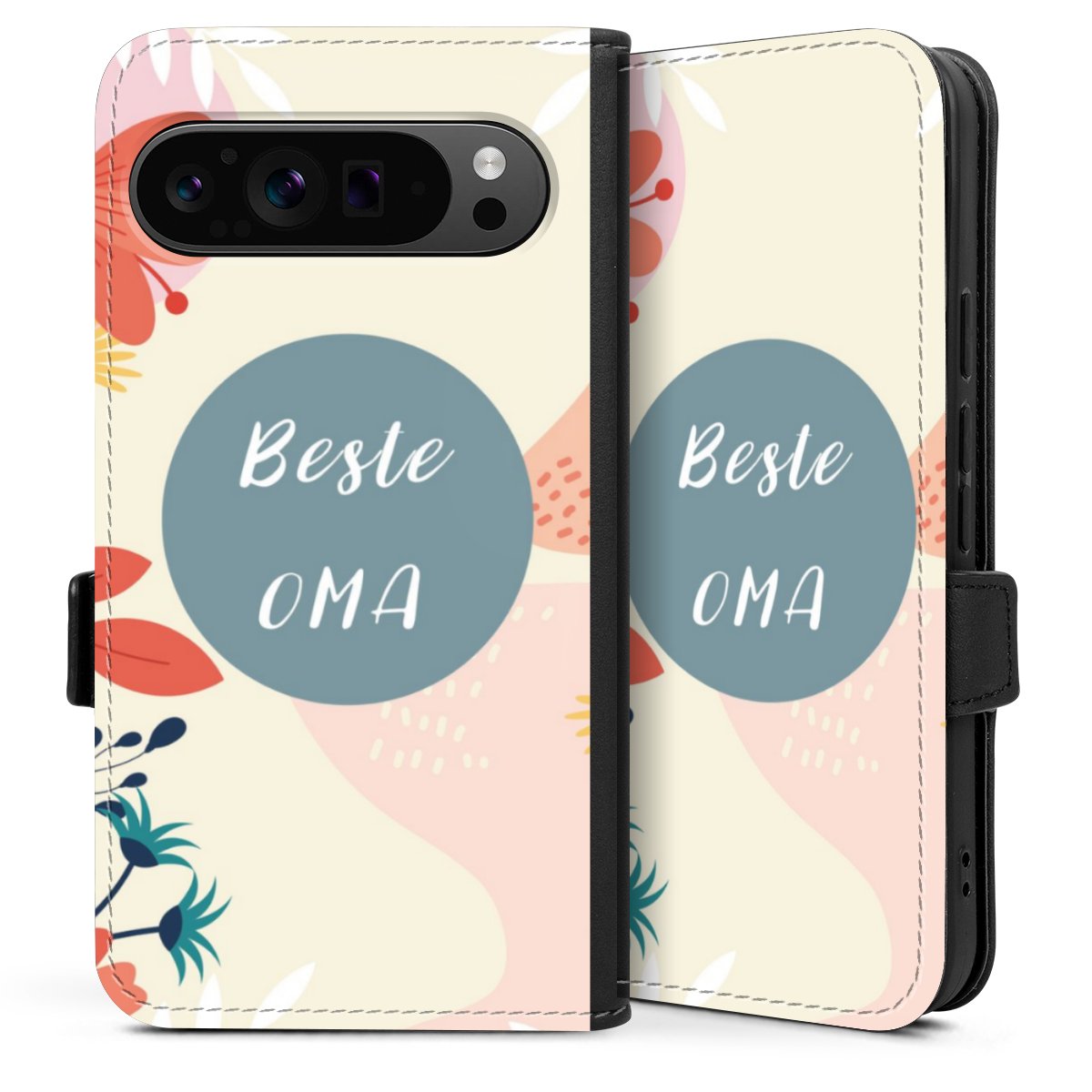 Die praktische Handyhülle schützt dein Handy innen mit einer flexiblen Silikon-Schale, außen kommt ein hochwertiges veganes Skai®-Kunstleder zum Einsatz. Die Handyhülle ist seitlich aufklappbar und hat im schützenden Deckel 2 diagonal vernähte Steckplätze für Karten oder Geldscheine.