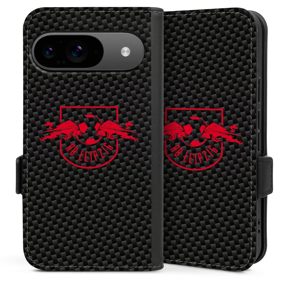 Rotes RB Leipzig Logo auf Carbonoptik