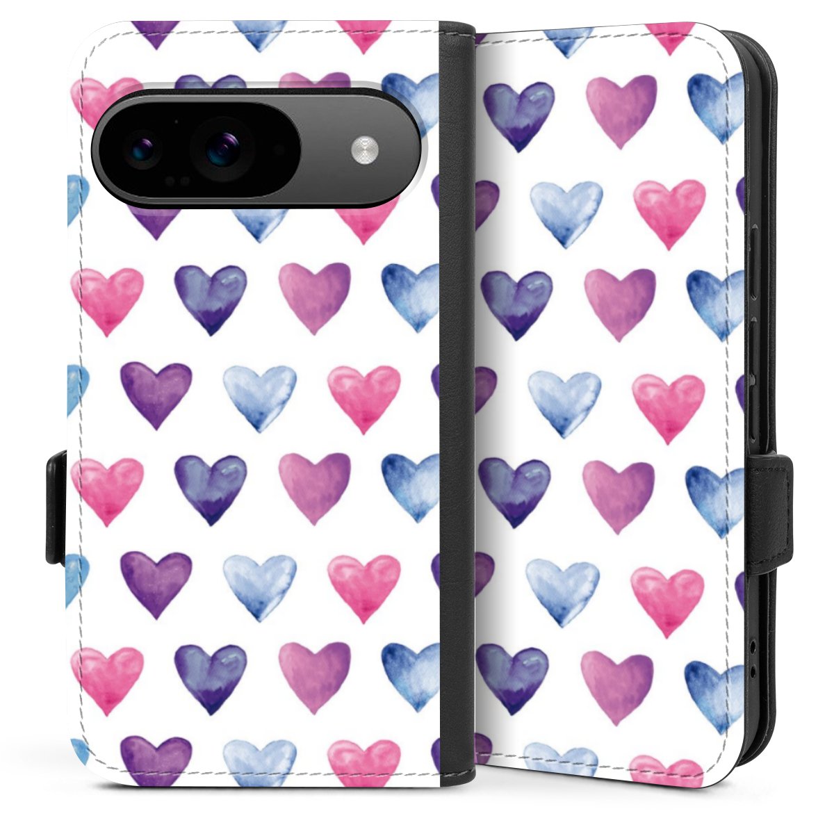Die praktische Handyhülle schützt dein Handy innen mit einer flexiblen Silikon-Schale, außen kommt ein hochwertiges veganes Skai®-Kunstleder zum Einsatz. Die Handyhülle ist seitlich aufklappbar und hat im schützenden Deckel 2 diagonal vernähte Steckplätze für Karten oder Geldscheine.