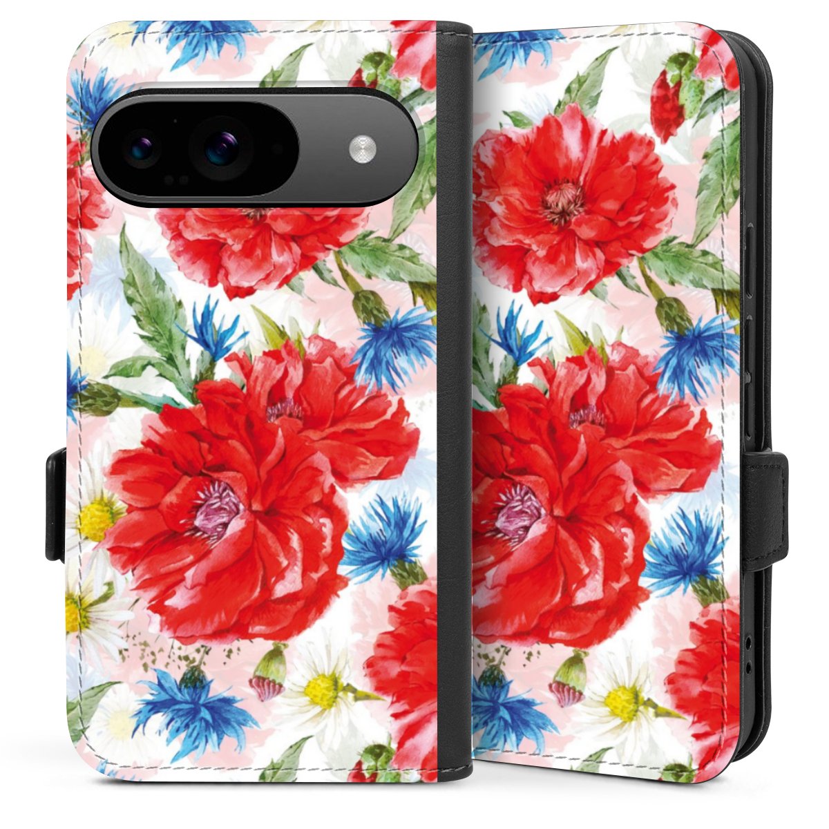 Die praktische Handyhülle schützt dein Handy innen mit einer flexiblen Silikon-Schale, außen kommt ein hochwertiges veganes Skai®-Kunstleder zum Einsatz. Die Handyhülle ist seitlich aufklappbar und hat im schützenden Deckel 2 diagonal vernähte Steckplätze für Karten oder Geldscheine.