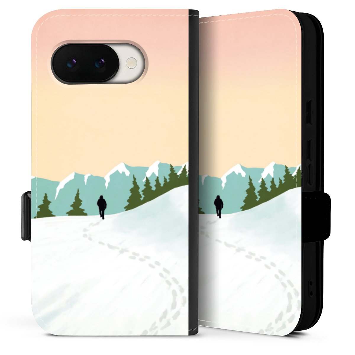 Bei dieser Handyhülle nutzen wir das solide Direktdruck-Verfahren. Der Druckbereich umfasst die Vorder- und Rückseite, die Innenseiten bleiben unbedruckt. Die Handyhülle kann sowohl unbedruckt, als auch vollflächig oder partiell bedruckt bestellt werden. Beachte hierbei, dass der Druck wie in der Ansicht dargestellt auf dem Rücken unterbrochen ist, damit Dein Druckbild durch das Klappen der Tasche nicht brüchig wird. Der Vorteil bei diesem Produkt: aufgrund der seitlich angebrachten Lasche wird kein Teil des Druckbildes verdeckt.