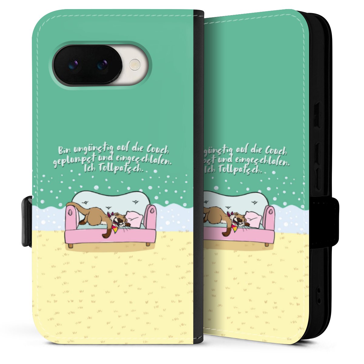 Die Sideflip Handyhülle ist wie für Dich und Dein Handy geschaffen: So gibt es Aussparungen für Anschlüsse, Kamera und Bedienelemente. Die Vorderseite der Hülle deckt Deinen ganzen Bildschirm optimal ab. Durch eine magnetische Lasche an der Seite schließt die Hülle sicher und zuverlässig. Im Handumdrehen kannst Du die Handyhülle anbringen und abnehmen.