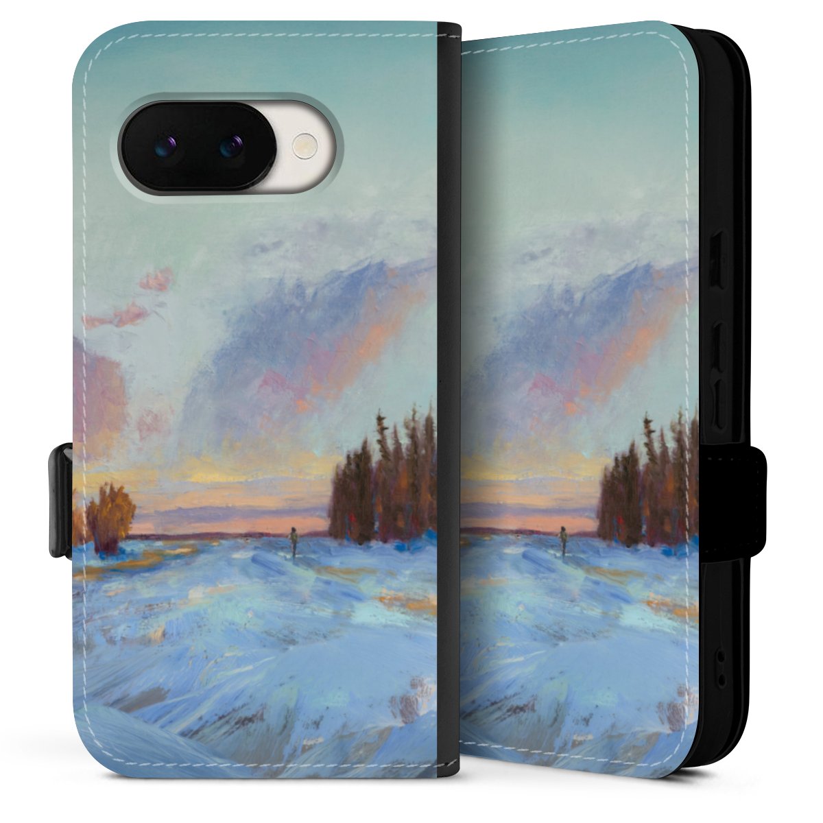 Bei dieser Handyhülle nutzen wir das solide Direktdruck-Verfahren. Der Druckbereich umfasst die Vorder- und Rückseite, die Innenseiten bleiben unbedruckt. Die Handyhülle kann sowohl unbedruckt, als auch vollflächig oder partiell bedruckt bestellt werden. Beachte hierbei, dass der Druck wie in der Ansicht dargestellt auf dem Rücken unterbrochen ist, damit Dein Druckbild durch das Klappen der Tasche nicht brüchig wird. Der Vorteil bei diesem Produkt: aufgrund der seitlich angebrachten Lasche wird kein Teil des Druckbildes verdeckt.
