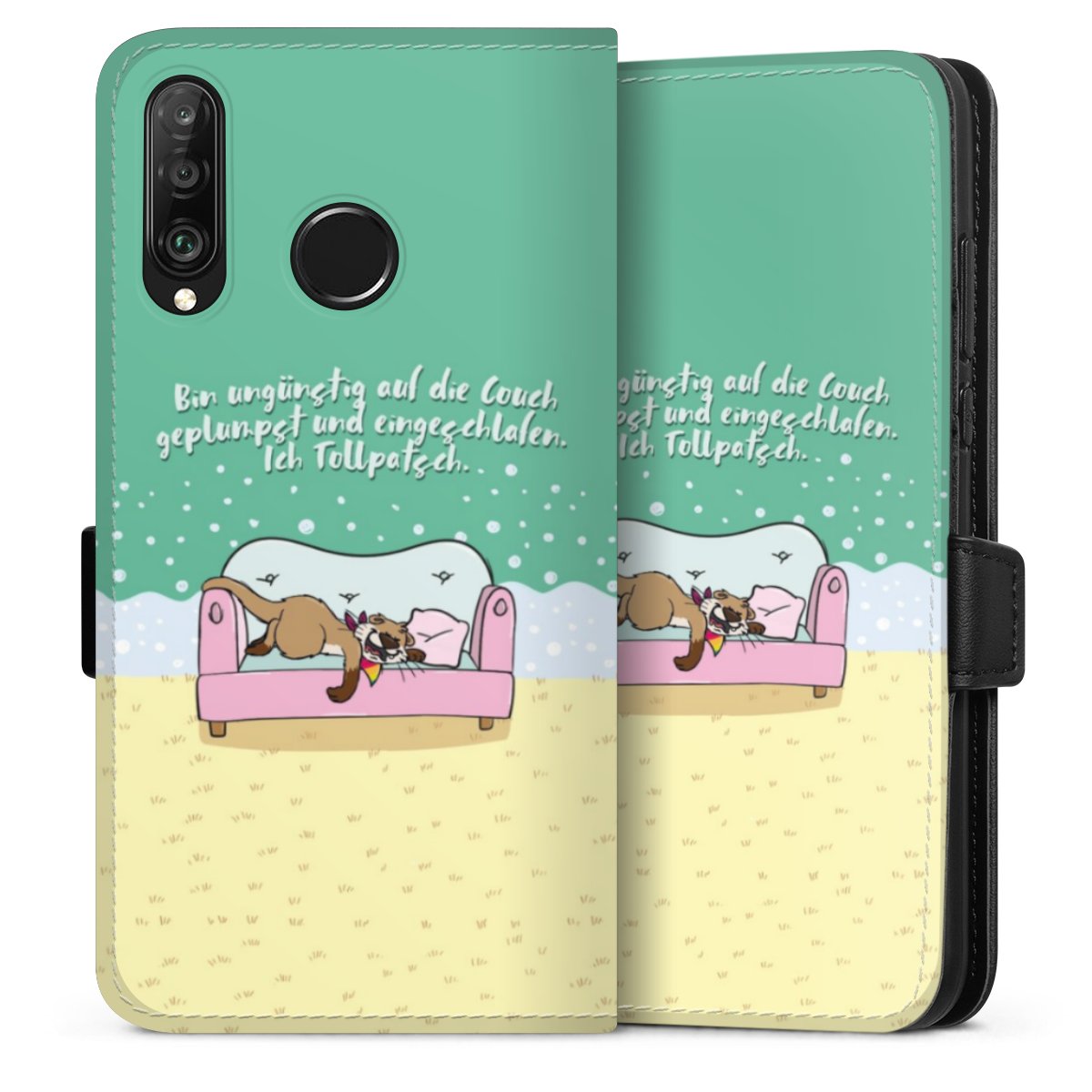 Die Sideflip Handyhülle ist wie für Dich und Dein Handy geschaffen: So gibt es Aussparungen für Anschlüsse, Kamera und Bedienelemente. Die Vorderseite der Hülle deckt Deinen ganzen Bildschirm optimal ab. Durch eine magnetische Lasche an der Seite schließt die Hülle sicher und zuverlässig. Im Handumdrehen kannst Du die Handyhülle anbringen und abnehmen.