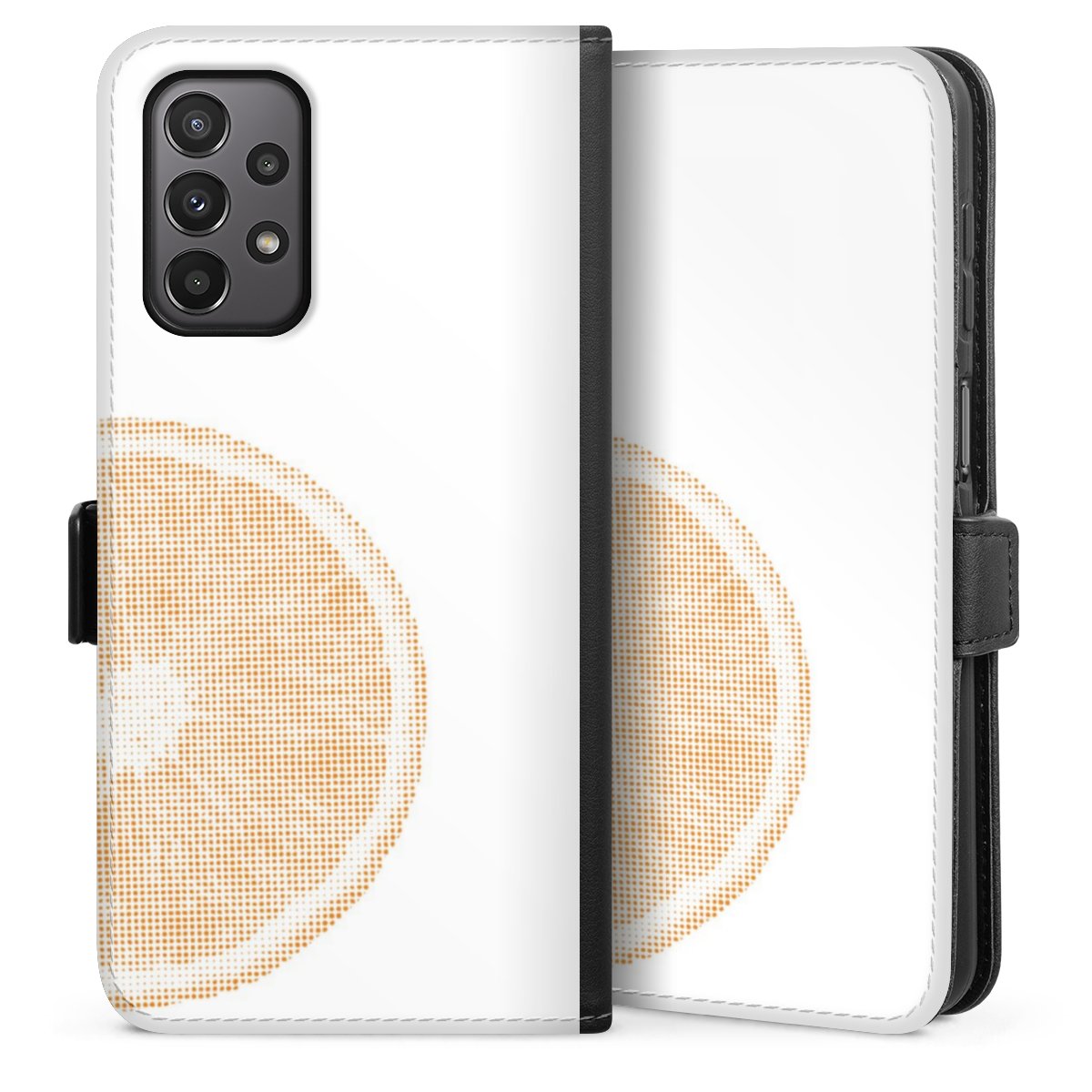 Bei dieser Handyhülle nutzen wir das solide Direktdruck-Verfahren. Der Druckbereich umfasst die Vorder- und Rückseite, die Innenseiten bleiben unbedruckt. Die Handyhülle kann sowohl unbedruckt, als auch vollflächig oder partiell bedruckt bestellt werden. Beachte hierbei, dass der Druck wie in der Ansicht dargestellt auf dem Rücken unterbrochen ist, damit Dein Druckbild durch das Klappen der Tasche nicht brüchig wird. Der Vorteil bei diesem Produkt: aufgrund der seitlich angebrachten Lasche wird kein Teil des Druckbildes verdeckt.