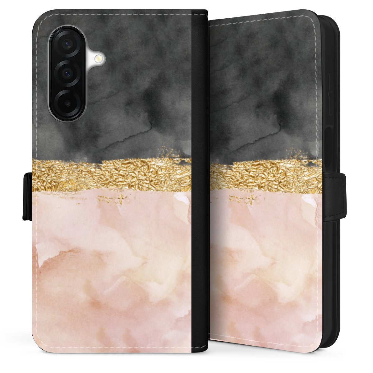 Bei dieser Handyhülle nutzen wir das solide Direktdruck-Verfahren. Der Druckbereich umfasst die Vorder- und Rückseite, die Innenseiten bleiben unbedruckt. Die Handyhülle kann sowohl unbedruckt, als auch vollflächig oder partiell bedruckt bestellt werden. Beachte hierbei, dass der Druck wie in der Ansicht dargestellt auf dem Rücken unterbrochen ist, damit Dein Druckbild durch das Klappen der Tasche nicht brüchig wird. Der Vorteil bei diesem Produkt: aufgrund der seitlich angebrachten Lasche wird kein Teil des Druckbildes verdeckt.