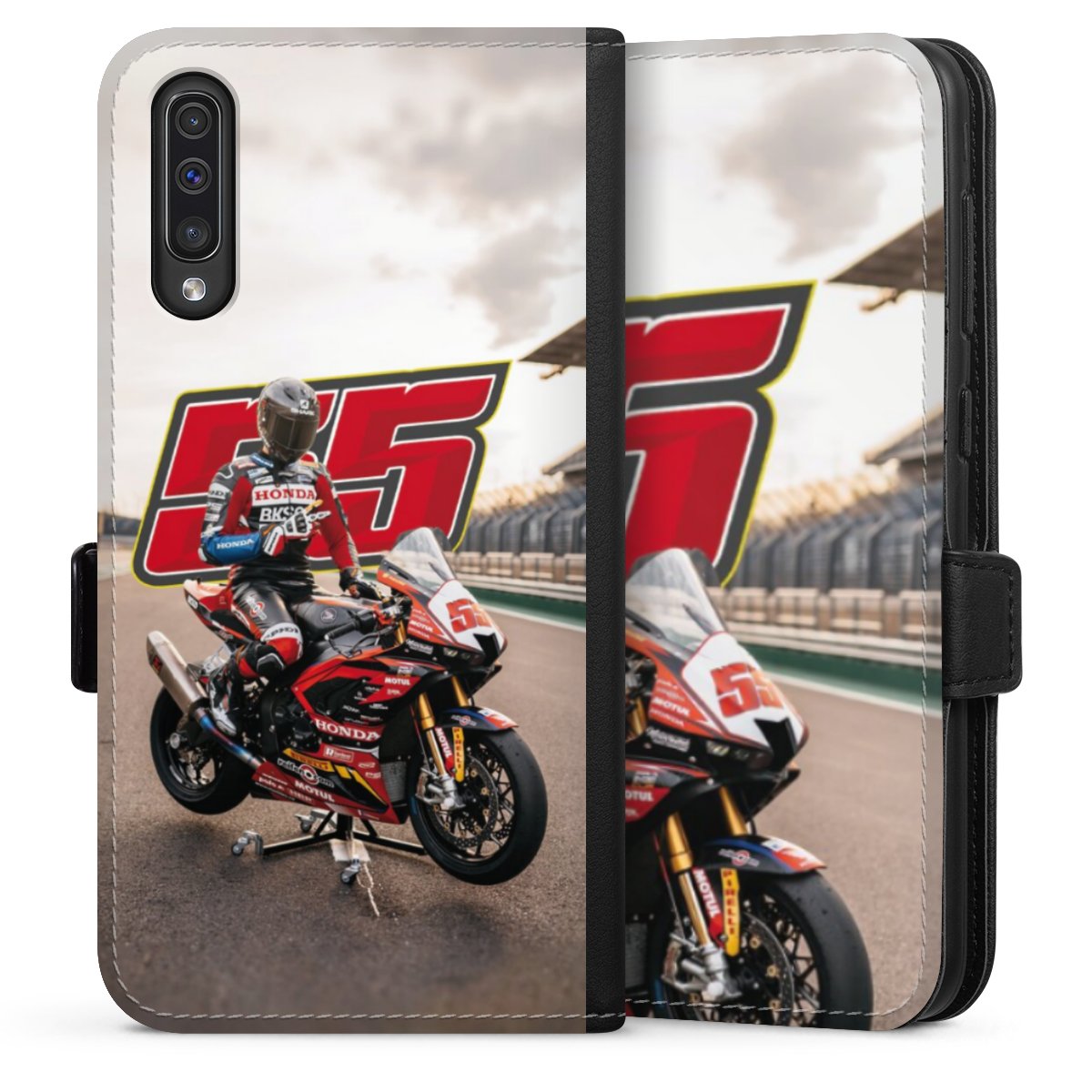 Die Sideflip Handyhülle ist wie für Dich und Dein Handy geschaffen: So gibt es Aussparungen für Anschlüsse, Kamera und Bedienelemente. Die Vorderseite der Hülle deckt Deinen ganzen Bildschirm optimal ab. Durch eine magnetische Lasche an der Seite schließt die Hülle sicher und zuverlässig. Im Handumdrehen kannst Du die Handyhülle anbringen und abnehmen.