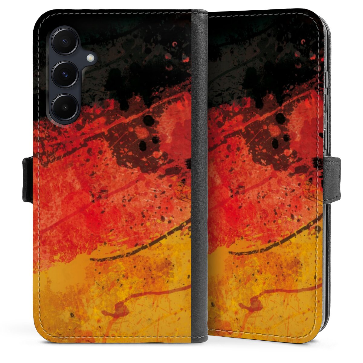 Die praktische Handyhülle schützt dein Handy innen mit einer flexiblen Silikon-Schale, außen kommt ein hochwertiges veganes Skai®-Kunstleder zum Einsatz. Die Handyhülle ist seitlich aufklappbar und hat im schützenden Deckel 2 diagonal vernähte Steckplätze für Karten oder Geldscheine.