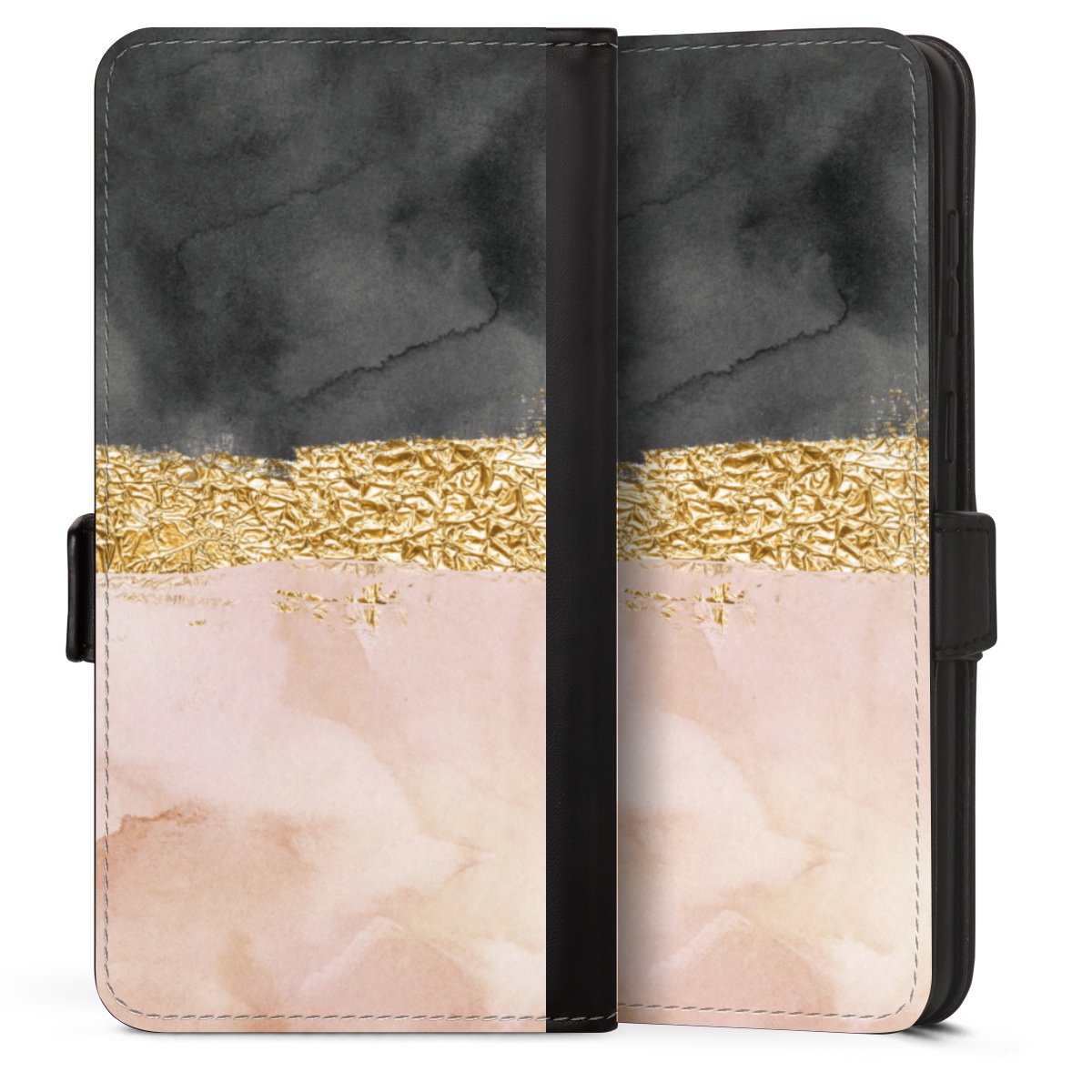 Bei dieser Handyhülle nutzen wir das solide Direktdruck-Verfahren. Der Druckbereich umfasst die Vorder- und Rückseite, die Innenseiten bleiben unbedruckt. Die Handyhülle kann sowohl unbedruckt, als auch vollflächig oder partiell bedruckt bestellt werden. Beachte hierbei, dass der Druck wie in der Ansicht dargestellt auf dem Rücken unterbrochen ist, damit Dein Druckbild durch das Klappen der Tasche nicht brüchig wird. Der Vorteil bei diesem Produkt: aufgrund der seitlich angebrachten Lasche wird kein Teil des Druckbildes verdeckt.
