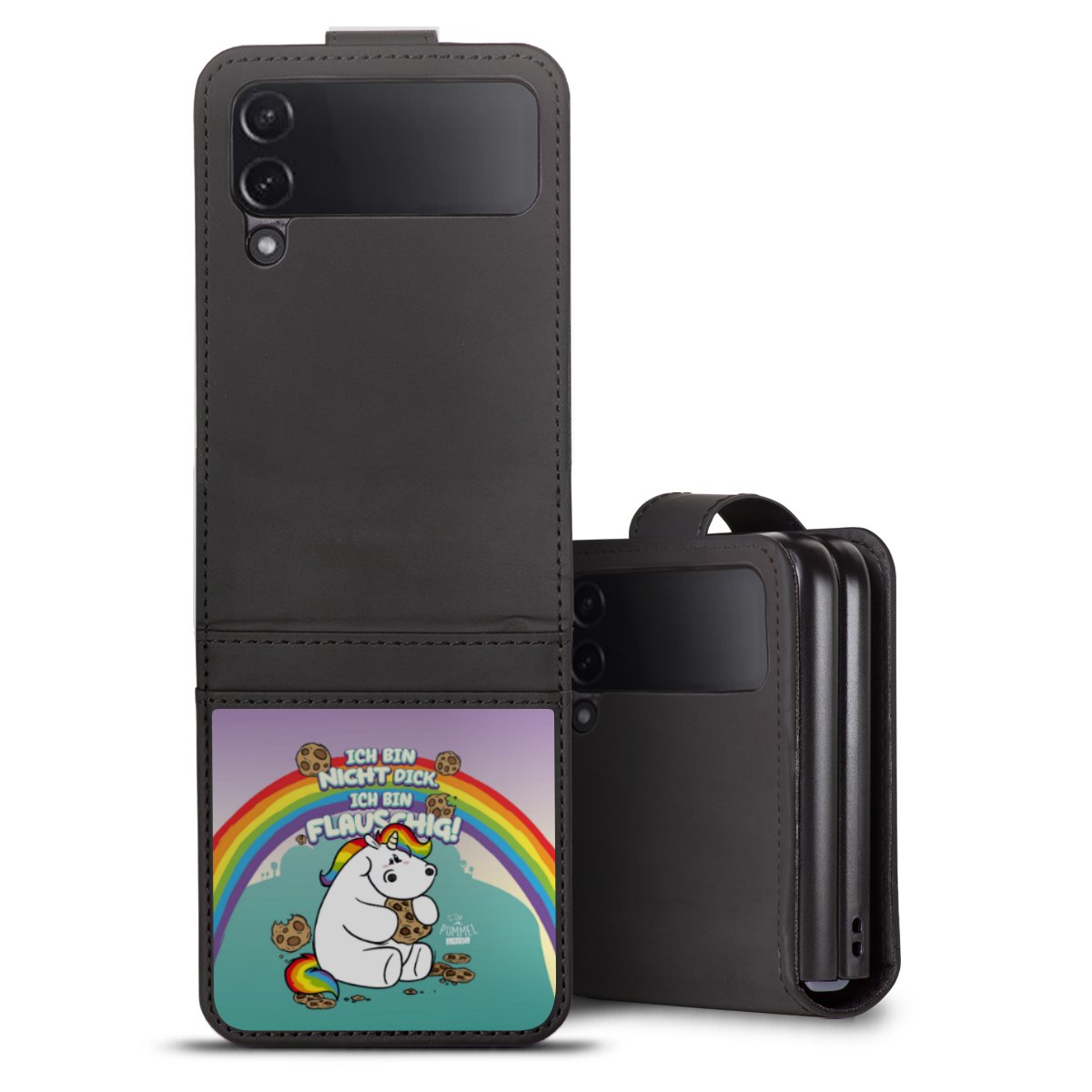 Die Sideflip Handyhülle ist wie für Dich und Dein Handy geschaffen: So gibt es Aussparungen für Anschlüsse, Kamera und Bedienelemente. Die Vorderseite der Hülle deckt Deinen ganzen Bildschirm optimal ab. Durch eine magnetische Lasche an der Seite schließt die Hülle sicher und zuverlässig. Im Handumdrehen kannst Du die Handyhülle anbringen und abnehmen.