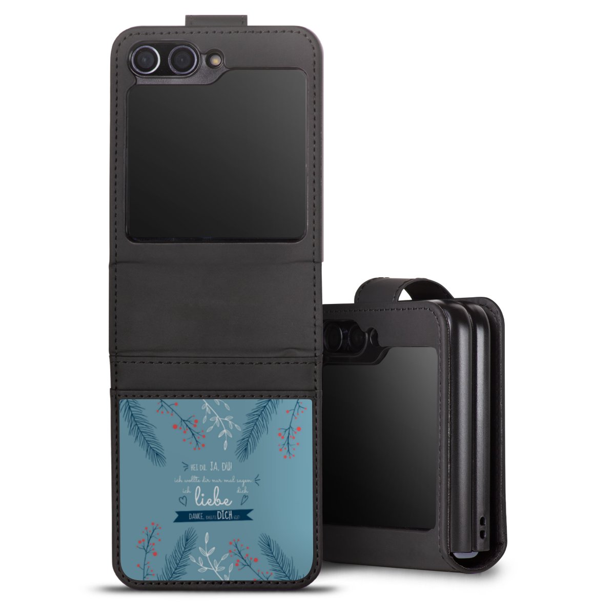 Die Sideflip Handyhülle ist wie für Dich und Dein Handy geschaffen: So gibt es Aussparungen für Anschlüsse, Kamera und Bedienelemente. Die Vorderseite der Hülle deckt Deinen ganzen Bildschirm optimal ab. Durch eine magnetische Lasche an der Seite schließt die Hülle sicher und zuverlässig. Im Handumdrehen kannst Du die Handyhülle anbringen und abnehmen.