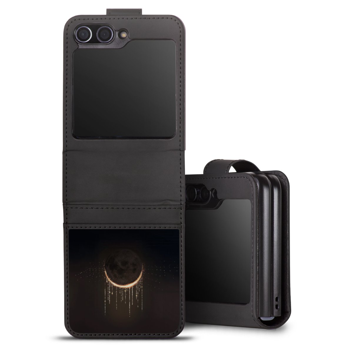 Die praktische Handyhülle schützt dein Handy innen mit einer flexiblen Silikon-Schale, außen kommt ein hochwertiges veganes Skai®-Kunstleder zum Einsatz. Die Handyhülle ist seitlich aufklappbar und hat im schützenden Deckel 2 diagonal vernähte Steckplätze für Karten oder Geldscheine.