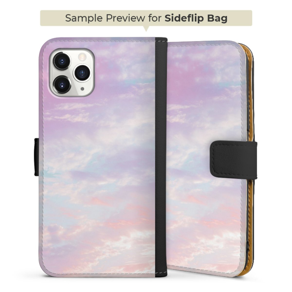 Bei dieser Handyhülle nutzen wir das solide Direktdruck-Verfahren. Der Druckbereich umfasst die Vorder- und Rückseite, die Innenseiten bleiben unbedruckt. Die Handyhülle kann sowohl unbedruckt, als auch vollflächig oder partiell bedruckt bestellt werden. Beachte hierbei, dass der Druck wie in der Ansicht dargestellt auf dem Rücken unterbrochen ist, damit Dein Druckbild durch das Klappen der Tasche nicht brüchig wird. Der Vorteil bei diesem Produkt: aufgrund der seitlich angebrachten Lasche wird kein Teil des Druckbildes verdeckt.