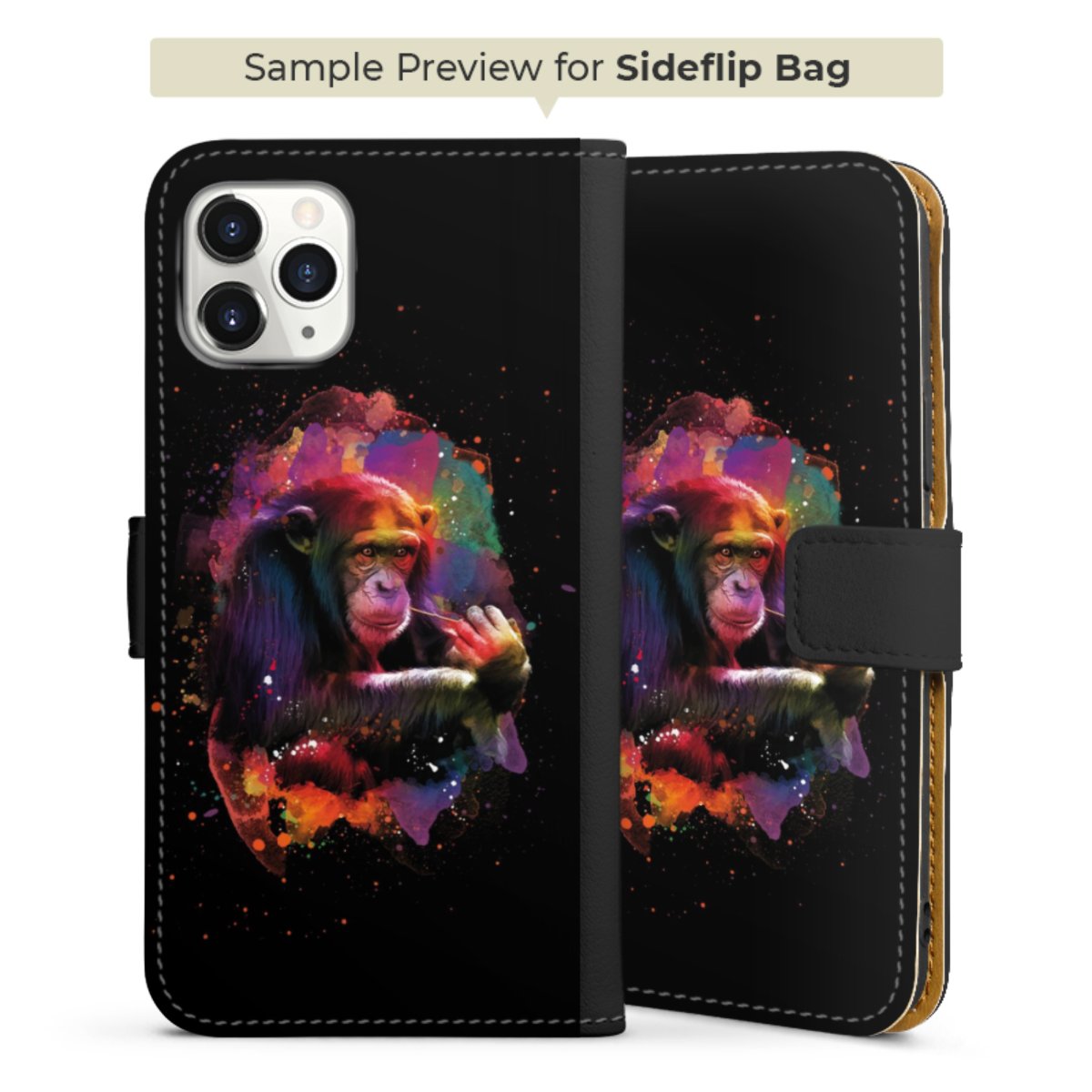 Bei dieser Handyhülle nutzen wir das solide Direktdruck-Verfahren. Der Druckbereich umfasst die Vorder- und Rückseite, die Innenseiten bleiben unbedruckt. Die Handyhülle kann sowohl unbedruckt, als auch vollflächig oder partiell bedruckt bestellt werden. Beachte hierbei, dass der Druck wie in der Ansicht dargestellt auf dem Rücken unterbrochen ist, damit Dein Druckbild durch das Klappen der Tasche nicht brüchig wird. Der Vorteil bei diesem Produkt: aufgrund der seitlich angebrachten Lasche wird kein Teil des Druckbildes verdeckt.