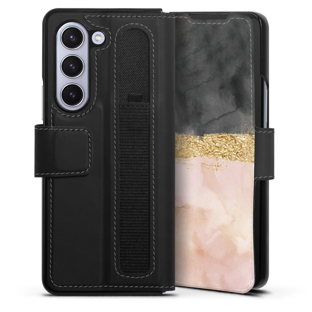 Bei dieser Handyhülle nutzen wir das solide Direktdruck-Verfahren. Der Druckbereich umfasst die Vorder- und Rückseite, die Innenseiten bleiben unbedruckt. Die Handyhülle kann sowohl unbedruckt, als auch vollflächig oder partiell bedruckt bestellt werden. Beachte hierbei, dass der Druck wie in der Ansicht dargestellt auf dem Rücken unterbrochen ist, damit Dein Druckbild durch das Klappen der Tasche nicht brüchig wird. Der Vorteil bei diesem Produkt: aufgrund der seitlich angebrachten Lasche wird kein Teil des Druckbildes verdeckt.