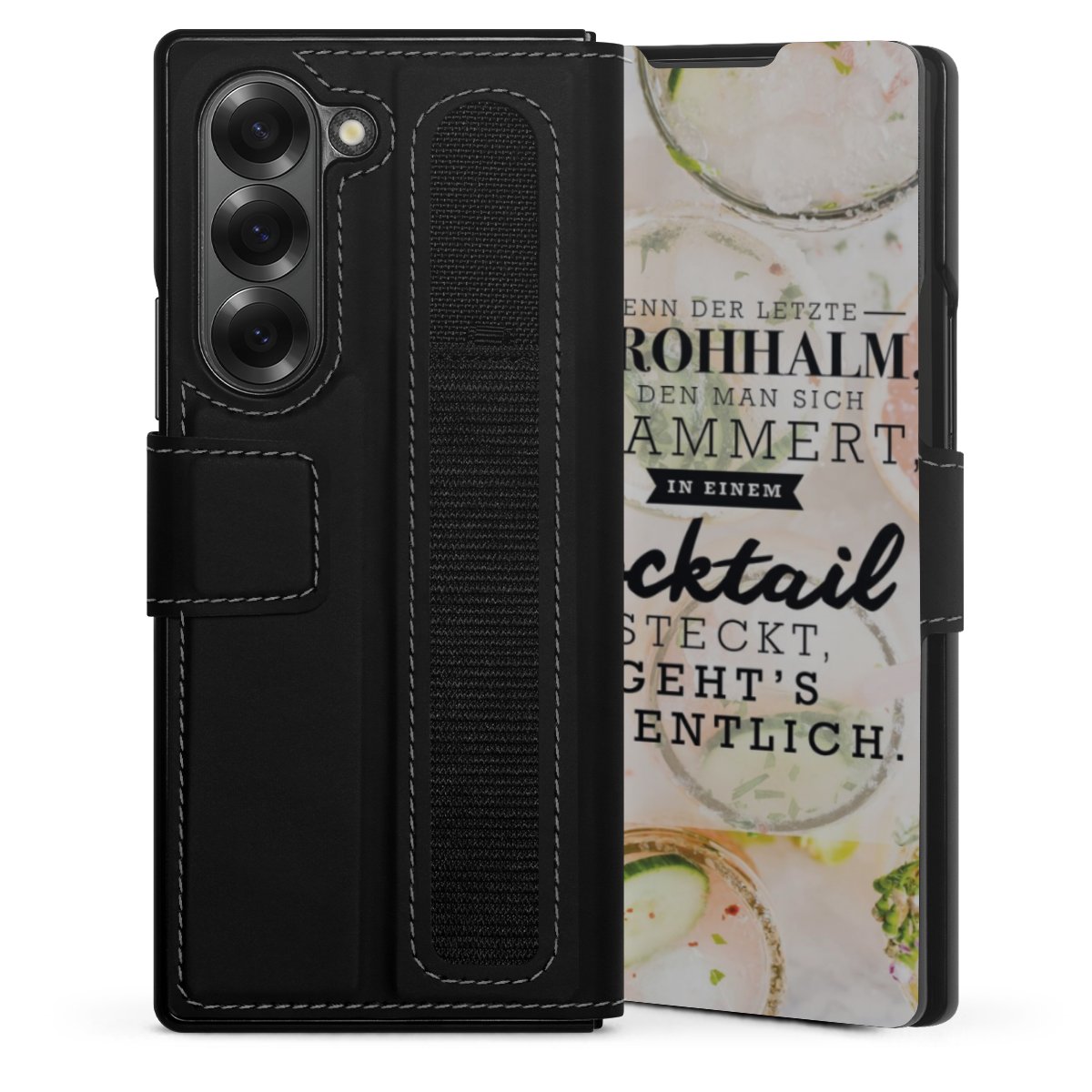 Die praktische Handyhülle schützt dein Handy innen mit einer flexiblen Silikon-Schale, außen kommt ein hochwertiges veganes Skai®-Kunstleder zum Einsatz. Die Handyhülle ist seitlich aufklappbar und hat im schützenden Deckel 2 diagonal vernähte Steckplätze für Karten oder Geldscheine.