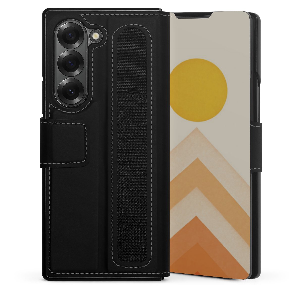 Bei dieser Handyhülle nutzen wir das solide Direktdruck-Verfahren. Der Druckbereich umfasst die Vorder- und Rückseite, die Innenseiten bleiben unbedruckt. Die Handyhülle kann sowohl unbedruckt, als auch vollflächig oder partiell bedruckt bestellt werden. Beachte hierbei, dass der Druck wie in der Ansicht dargestellt auf dem Rücken unterbrochen ist, damit Dein Druckbild durch das Klappen der Tasche nicht brüchig wird. Der Vorteil bei diesem Produkt: aufgrund der seitlich angebrachten Lasche wird kein Teil des Druckbildes verdeckt.