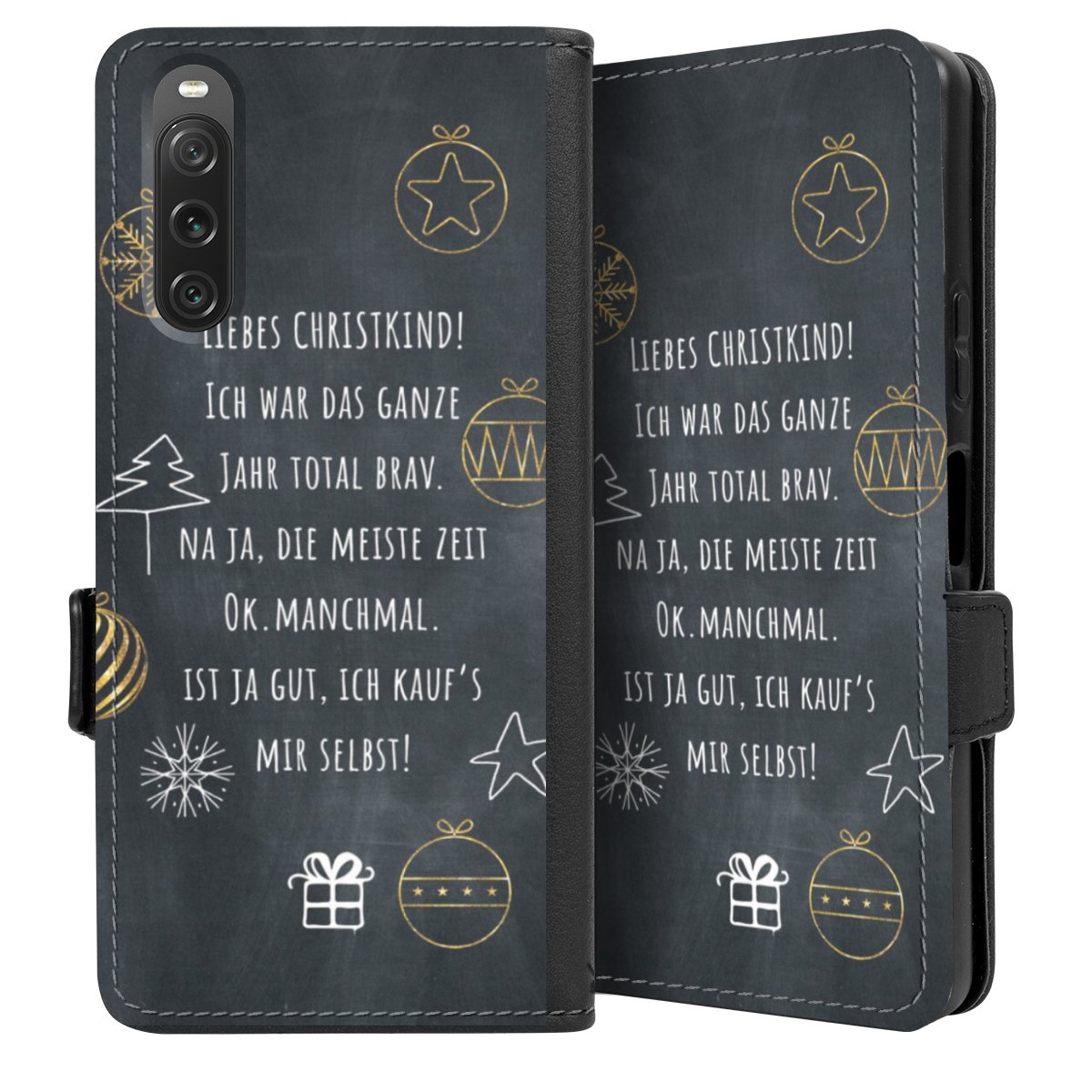 Die praktische Handyhülle schützt dein Handy innen mit einer flexiblen Silikon-Schale, außen kommt ein hochwertiges veganes Skai®-Kunstleder zum Einsatz. Die Handyhülle ist seitlich aufklappbar und hat im schützenden Deckel 2 diagonal vernähte Steckplätze für Karten oder Geldscheine.