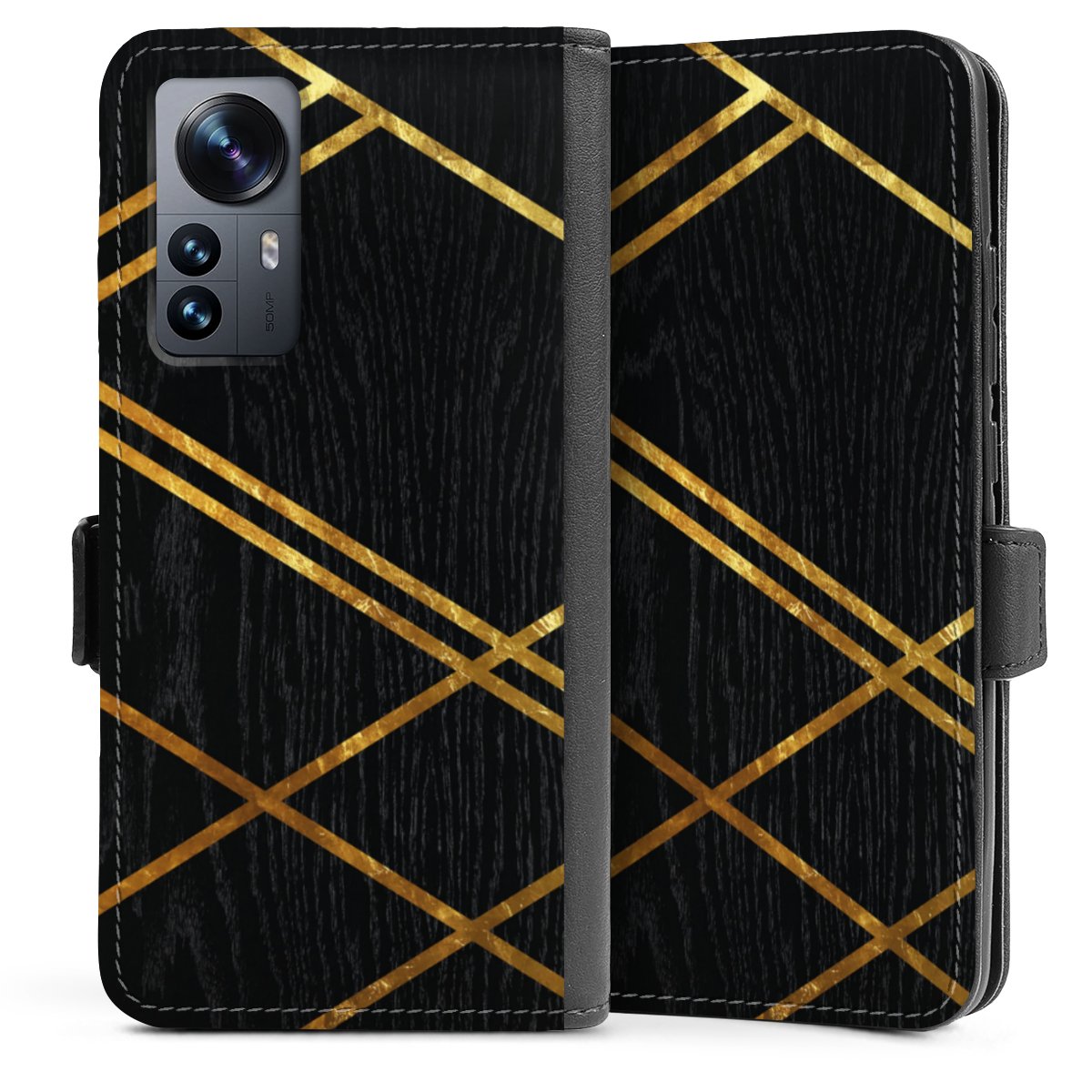 Schwarzes geometrisches Muster Goldene Streifen