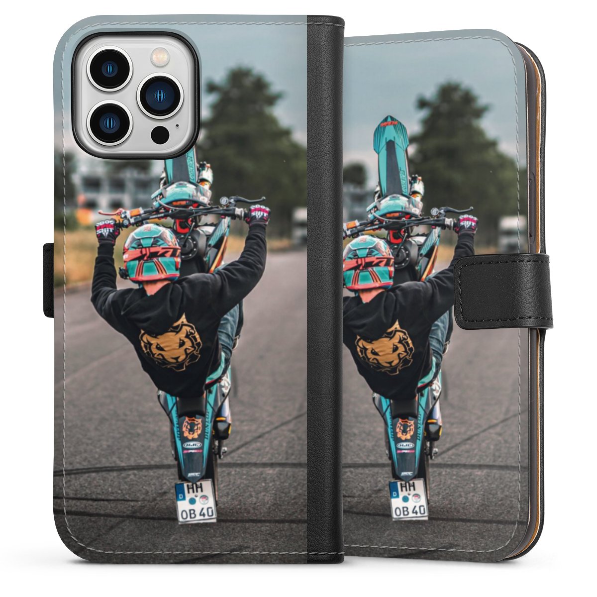 Die praktische Handyhülle schützt dein Handy innen mit einer stabilen Polycarbonat-Schale, außen kommt ein hochwertiges veganes Skai®-Kunstleder zum Einsatz. Die Handyhülle ist seitlich aufklappbar und hat im schützenden Deckel 1-3 Steckplätze für Visitenkarten (je nach Größe deines Handys)