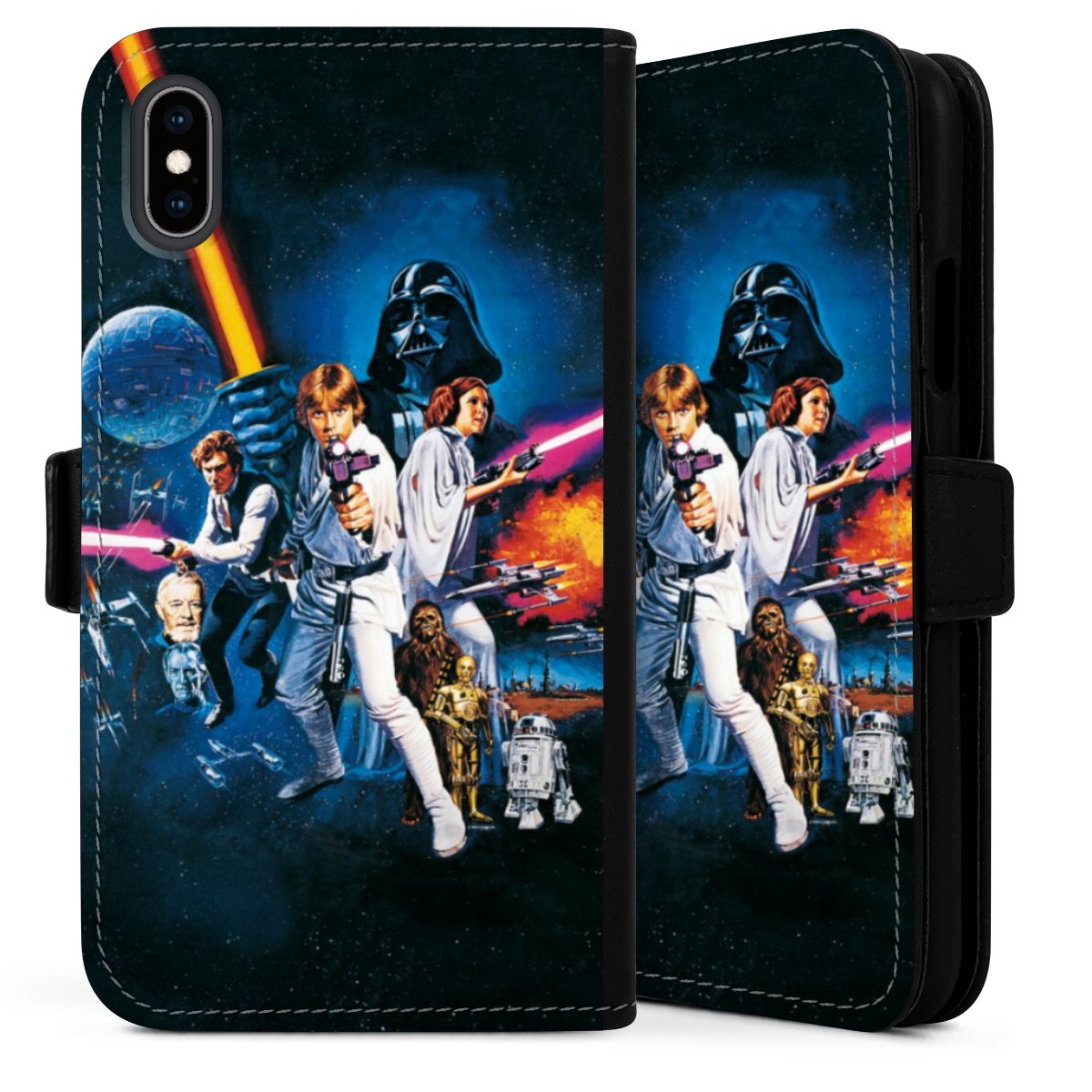 Darth Vader, C3PO, R2D2 und Meister Yoda findest Du in unserem Star Wars Shop auf DeinDesign. Natürlich gibt es auch Star Wars Handyhüllen mit den legendären Charakteren Luke Skywalker, Prinzessin Leia und Han Solo, den Helden der ersten Saga. Wer jedoch die Hauptfiguren der neuen Star Wars Filme ins Herz geschlossen hat, kann auch Finn und Rey mit ihren mächtigen Waffen auf der Rückseite seines Smartphones haben. Die vielseitigen Schutzhüllen in verschiedenen Ausführungen sind das perfekte Geschenk für alle Star Wars Fans, die ihrem Smartphone eine individuelle Note verleihen wollen.