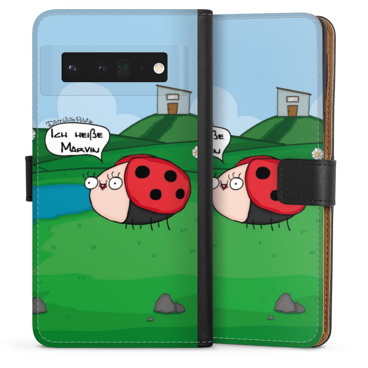 Ob Du Dich nun für Marvin, Günther das Schaf oder doch lieber für die dauerbekiffte Cannabiene entscheidest. Mit einem Motiv von DirtyWhitePaint wird Dein Smartphonen selbst zum Comic.