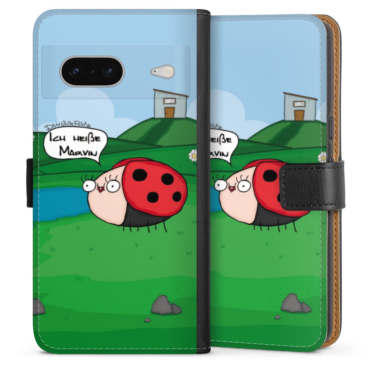 Ob Du Dich nun für Marvin, Günther das Schaf oder doch lieber für die dauerbekiffte Cannabiene entscheidest. Mit einem Motiv von DirtyWhitePaint wird Dein Smartphonen selbst zum Comic.