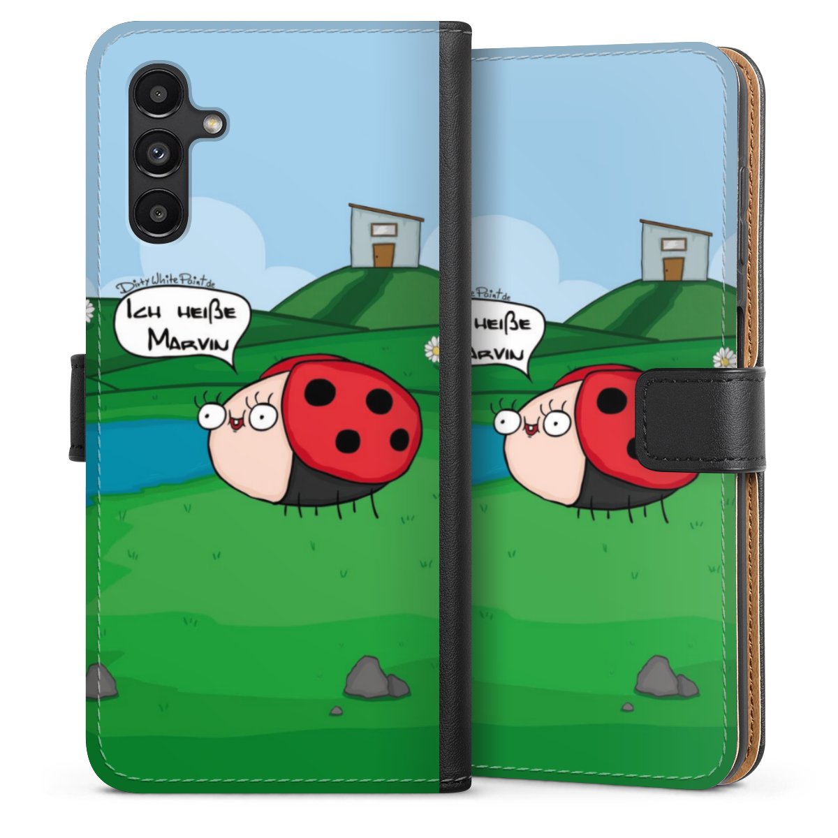 Ob Du Dich nun für Marvin, Günther das Schaf oder doch lieber für die dauerbekiffte Cannabiene entscheidest. Mit einem Motiv von DirtyWhitePaint wird Dein Smartphonen selbst zum Comic.