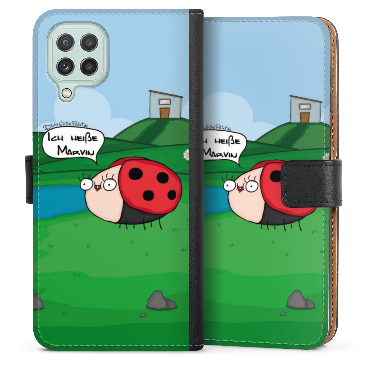 Ob Du Dich nun für Marvin, Günther das Schaf oder doch lieber für die dauerbekiffte Cannabiene entscheidest. Mit einem Motiv von DirtyWhitePaint wird Dein Smartphonen selbst zum Comic.