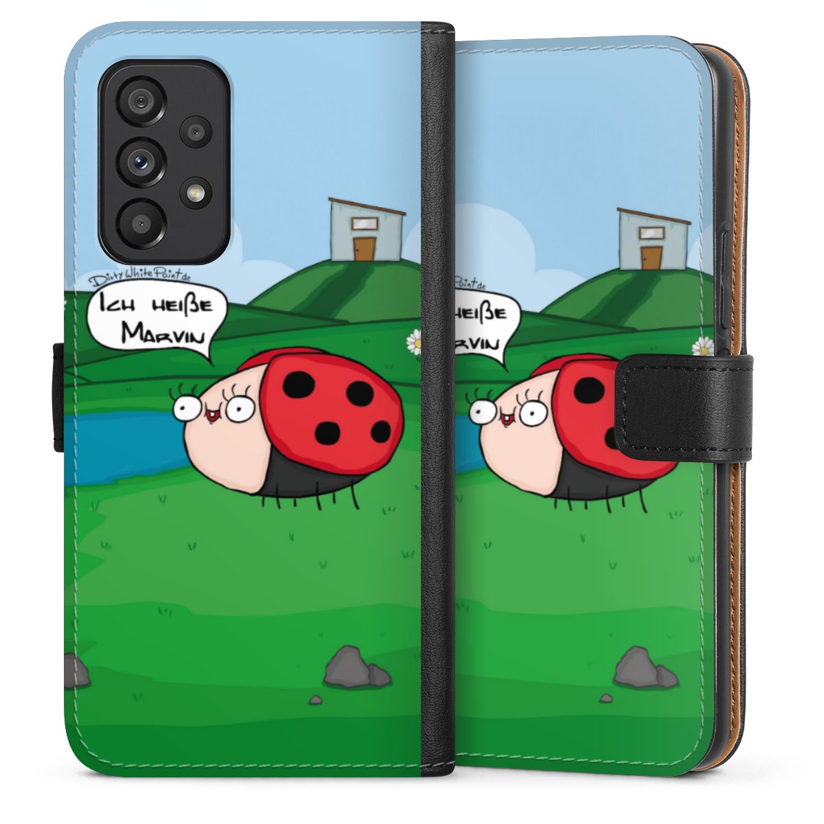 Ob Du Dich nun für Marvin, Günther das Schaf oder doch lieber für die dauerbekiffte Cannabiene entscheidest. Mit einem Motiv von DirtyWhitePaint wird Dein Smartphonen selbst zum Comic.