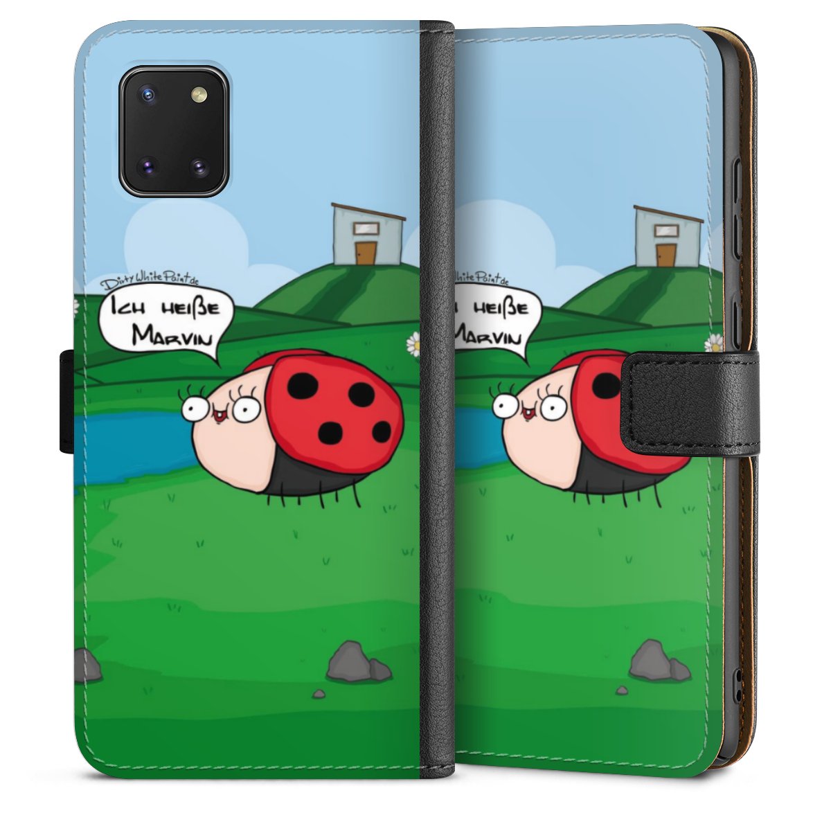 Ob Du Dich nun für Marvin, Günther das Schaf oder doch lieber für die dauerbekiffte Cannabiene entscheidest. Mit einem Motiv von DirtyWhitePaint wird Dein Smartphonen selbst zum Comic.