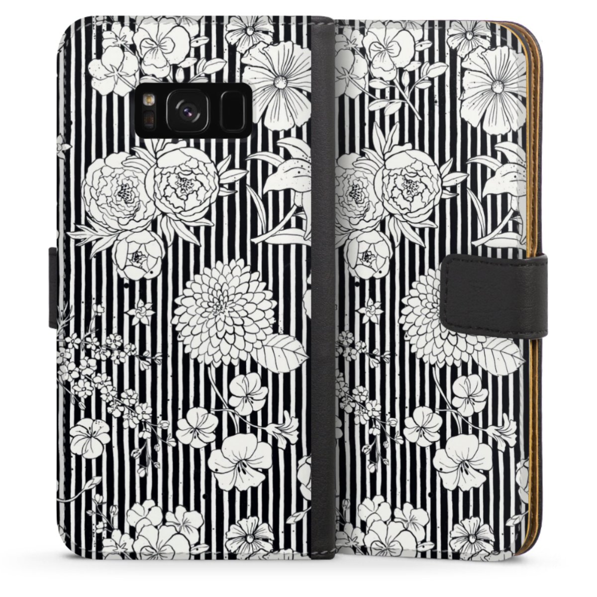 Blumen und Streifen Schwarz und Weiß