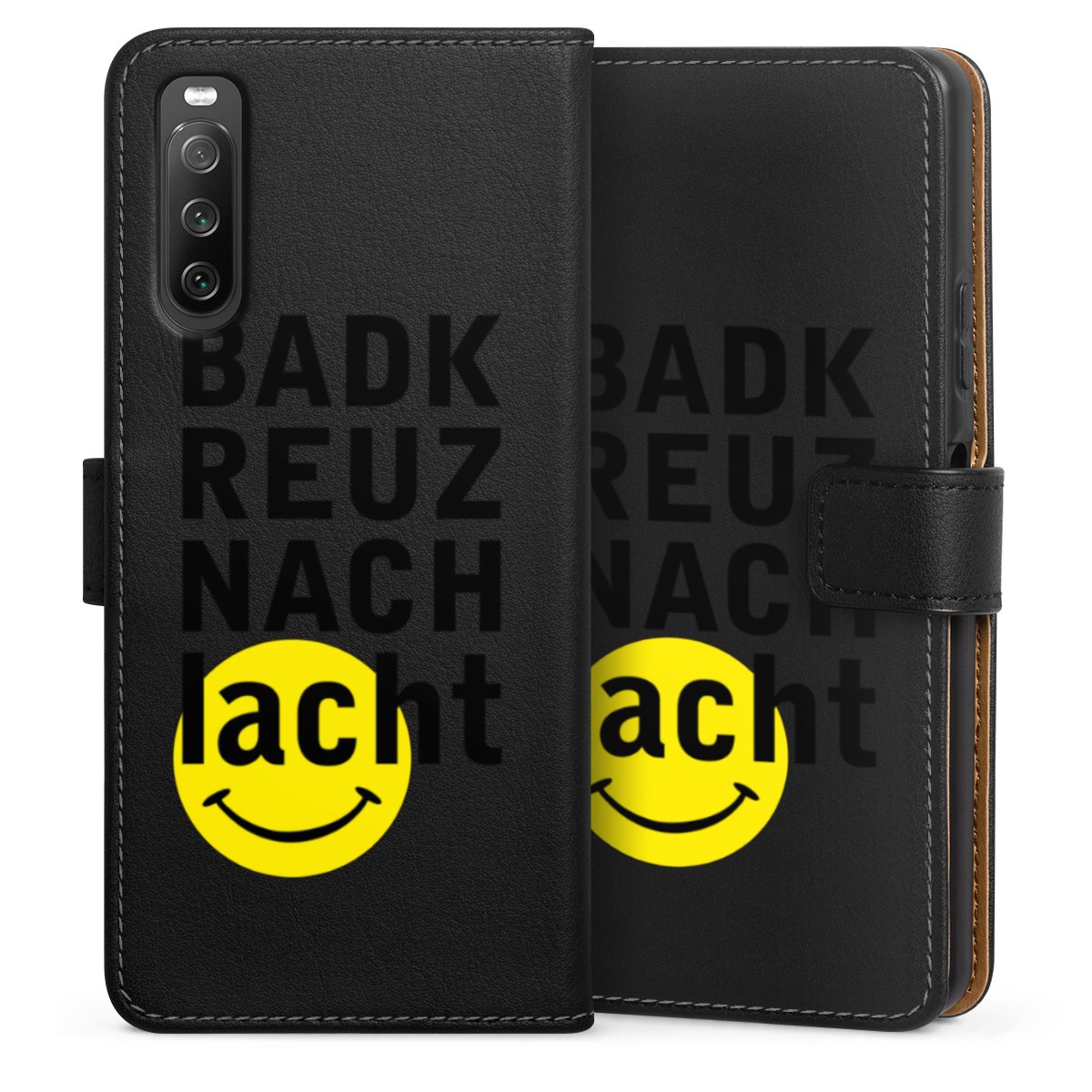 Die praktische Handyhülle schützt dein Handy innen mit einer stabilen Polycarbonat-Schale, außen kommt ein hochwertiges veganes Skai®-Kunstleder zum Einsatz. Die Handyhülle ist seitlich aufklappbar und hat im schützenden Deckel 1-3 Steckplätze für Visitenkarten (je nach Größe deines Handys)