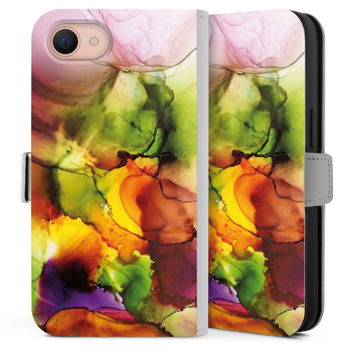 Bei dieser Handyhülle nutzen wir das solide Direktdruck-Verfahren. Der Druckbereich umfasst die Vorder- und Rückseite, die Innenseiten bleiben unbedruckt. Die Handyhülle kann sowohl unbedruckt, als auch vollflächig oder partiell bedruckt bestellt werden. Beachte hierbei, dass der Druck wie in der Ansicht dargestellt auf dem Rücken unterbrochen ist, damit Dein Druckbild durch das Klappen der Tasche nicht brüchig wird. Der Vorteil bei diesem Produkt: aufgrund der seitlich angebrachten Lasche wird kein Teil des Druckbildes verdeckt.