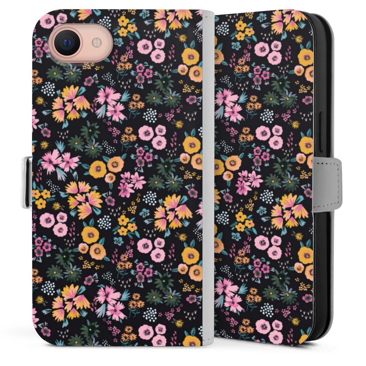 Kleine bunte Blumen Schwarz 2